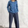- Ankle-length style with wide hems. Practical pockets. Comfortable elastic waist with a smooth section at the front center. In this soft fabric, the seed hulls are left in the yarn as a lovely detail.Size and Measurement