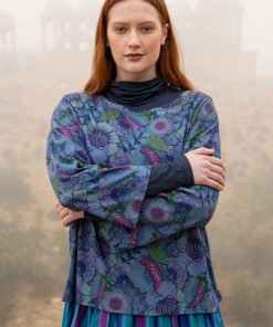 Gudrun Sjödén Women’s Clothes “aina” Jersey Top In Organic Cotton/modal | Sapphire Blue & Turquoise
