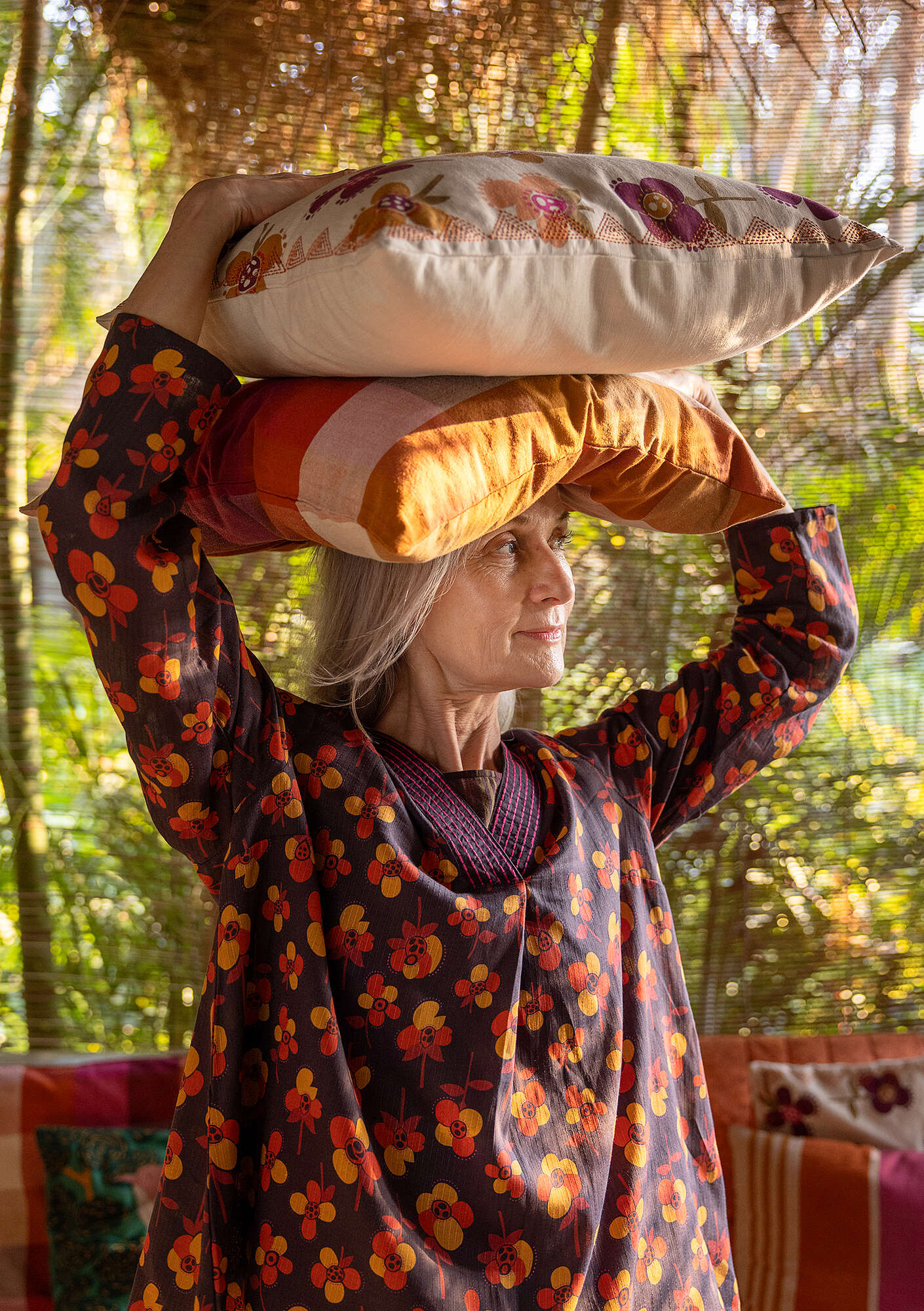 - 100% cotton.The cotton is certified organic. The entire production chain is certified. Machine wash warm, delicate cycle. Medium iron. Made in Karur, India.