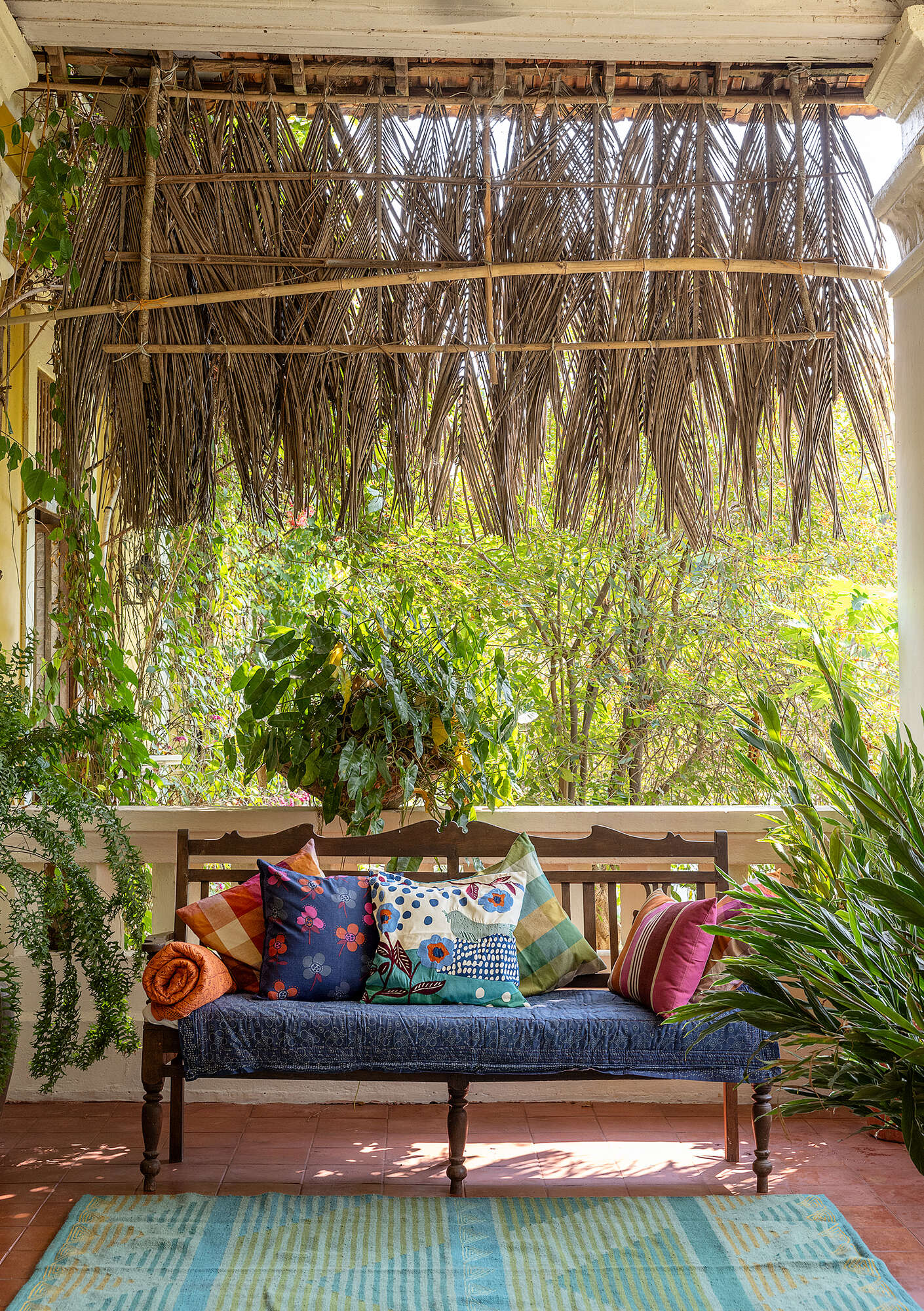 - 90% wool/10% cotton. Wool weft and cotton warp. Dry clean. Made in Panipat, India.