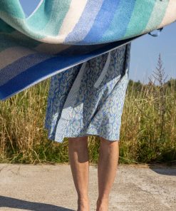 - 90% wool/10% cotton. Wool weft and cotton warp. Dry clean. Made in Panipat, India.