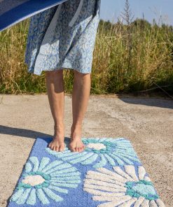 - A generously sized bath sheet, with flowers and striped sides in harmonious colors. Soft and comfy terry with excellent absorbency. Contrasting color at the edge and hangers on the short and long sides.Size and Measurement