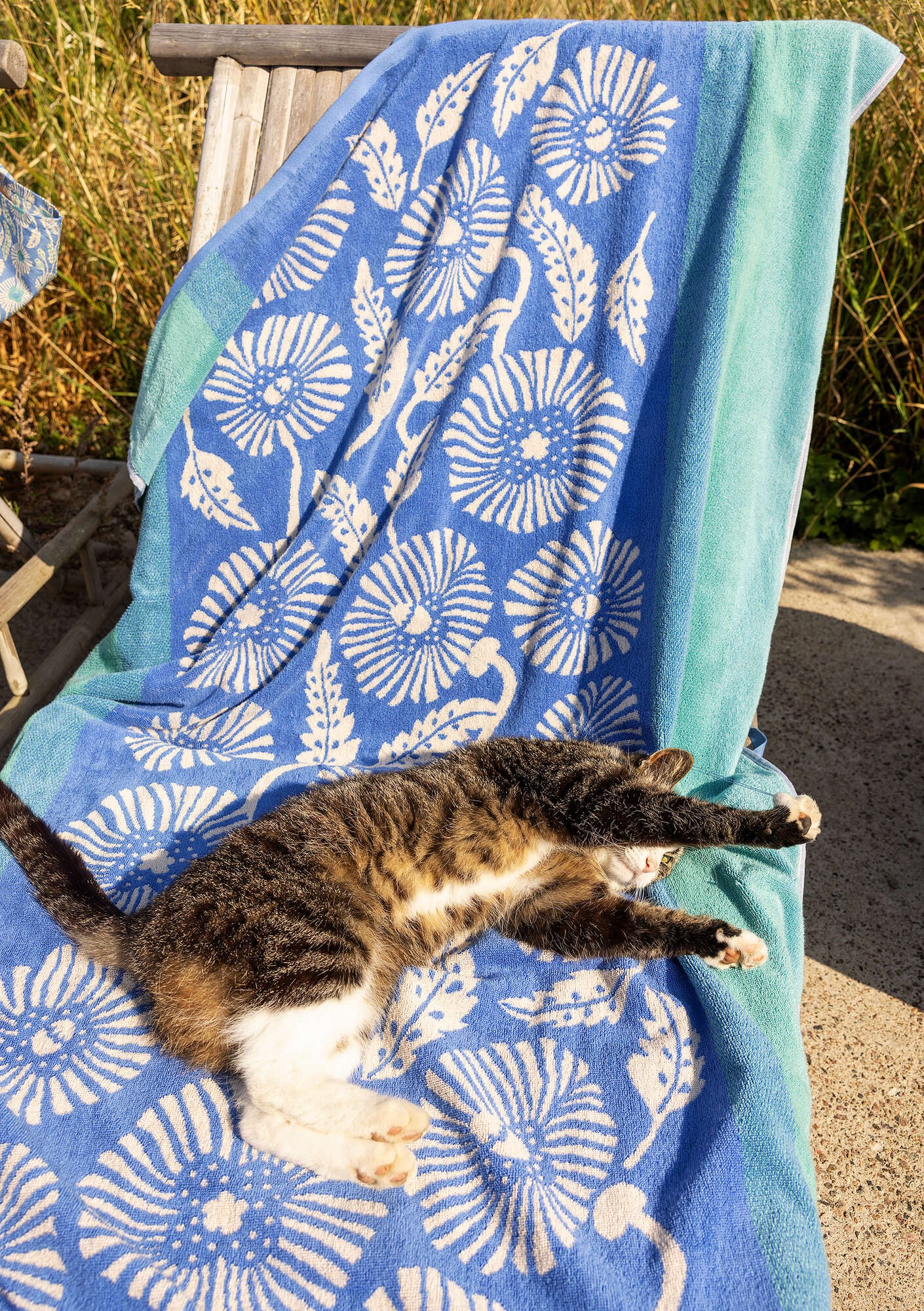 Gudrun Sjödén Homeware Homeware “poppies” Bath Sheet In Organic Cotton | Sea Blue