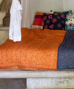 - Our beautiful throw is carefully crafted using the block-printing technique and decorated with hand embroidery along the borders. Reversible with different patterns on each side. Filled with soft cotton batting and quilted with a classic method.Size and Measurement