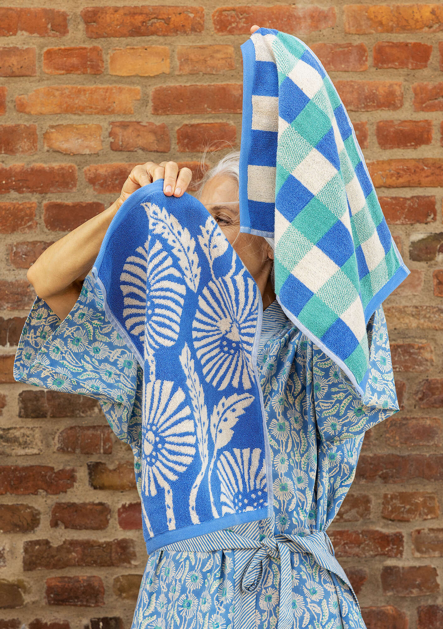Gudrun Sjödén Homeware Room “poppies” Guest Towel 2-pack In Organic Cotton | Sea Blue
