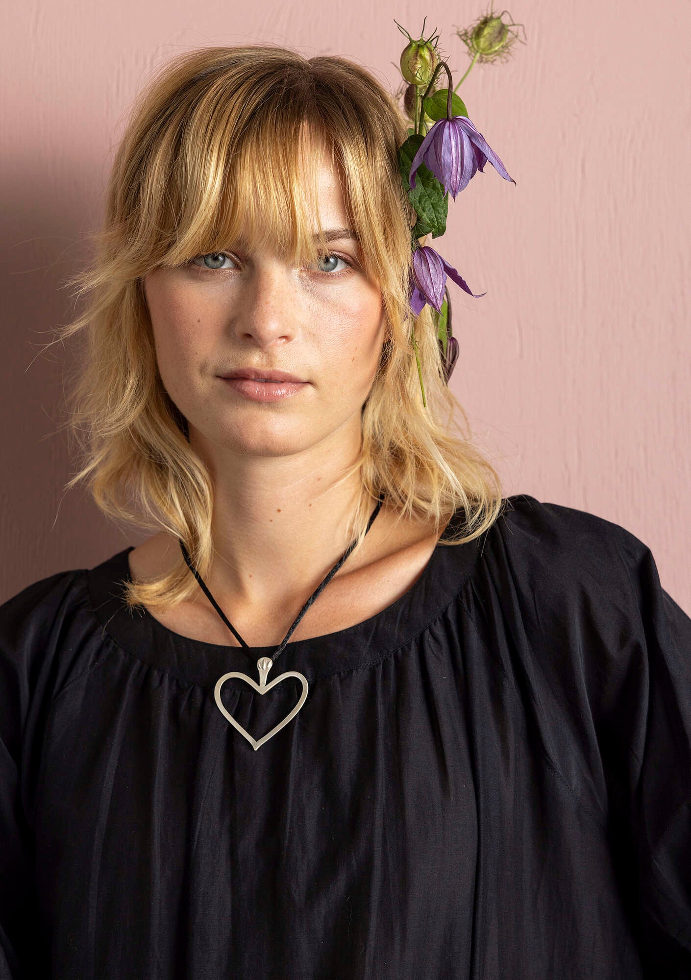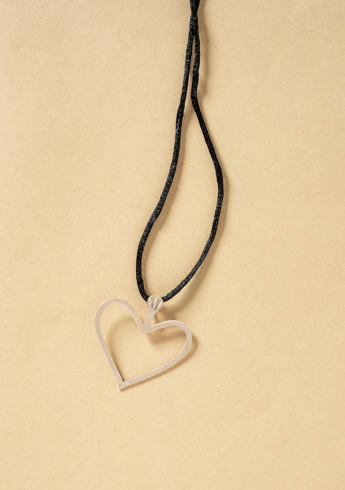 - Exclusive necklace with a charming heart-shaped pendant in 925 sterling silver with relief details. 62 cm long with a silver clasp. Comes in a small cloth bag.Size and Measurement