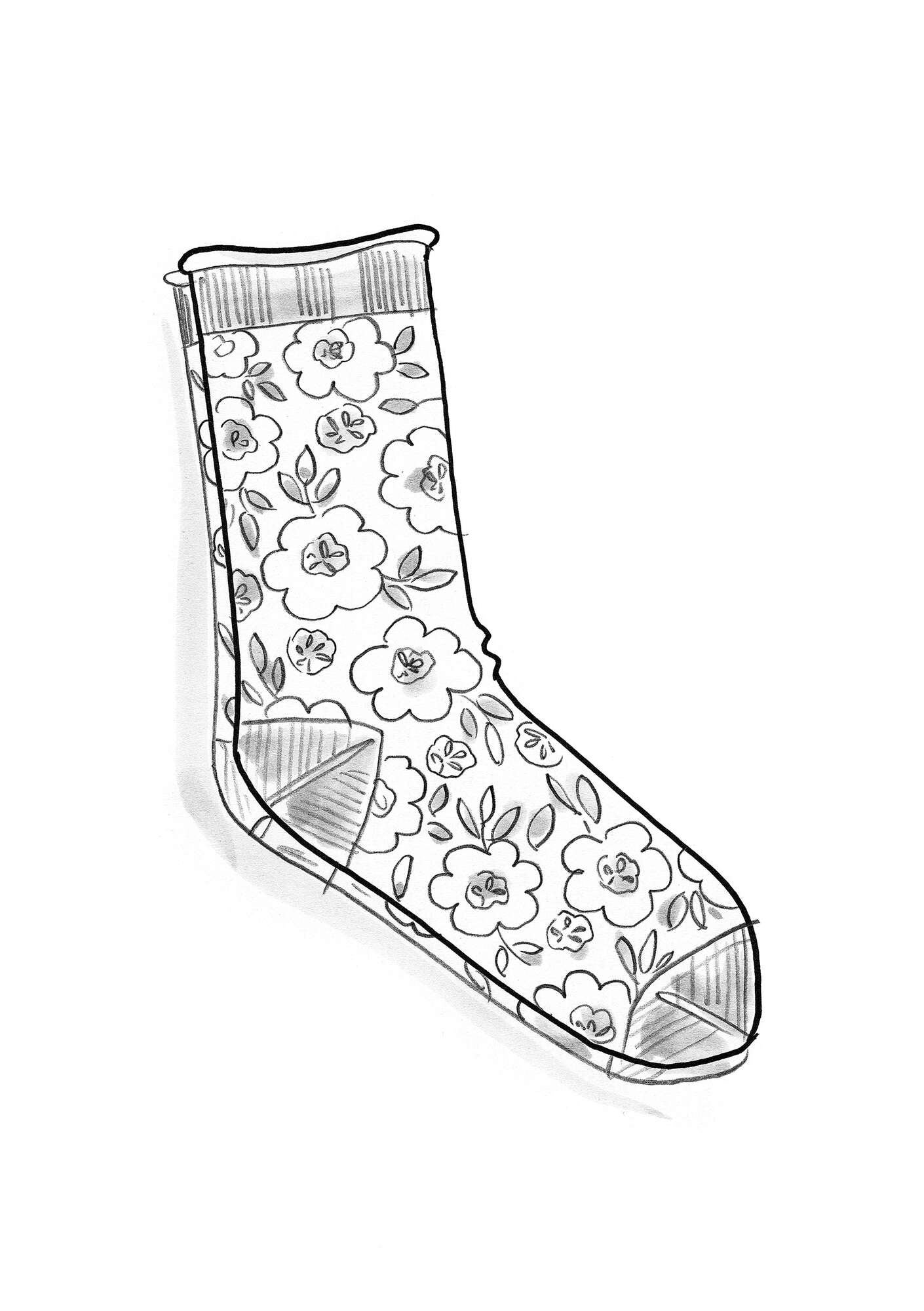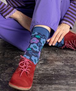 - Floral socks in several fabulous colors. Comfortable rolled edge in an accent color at the top.Size and Measurement
