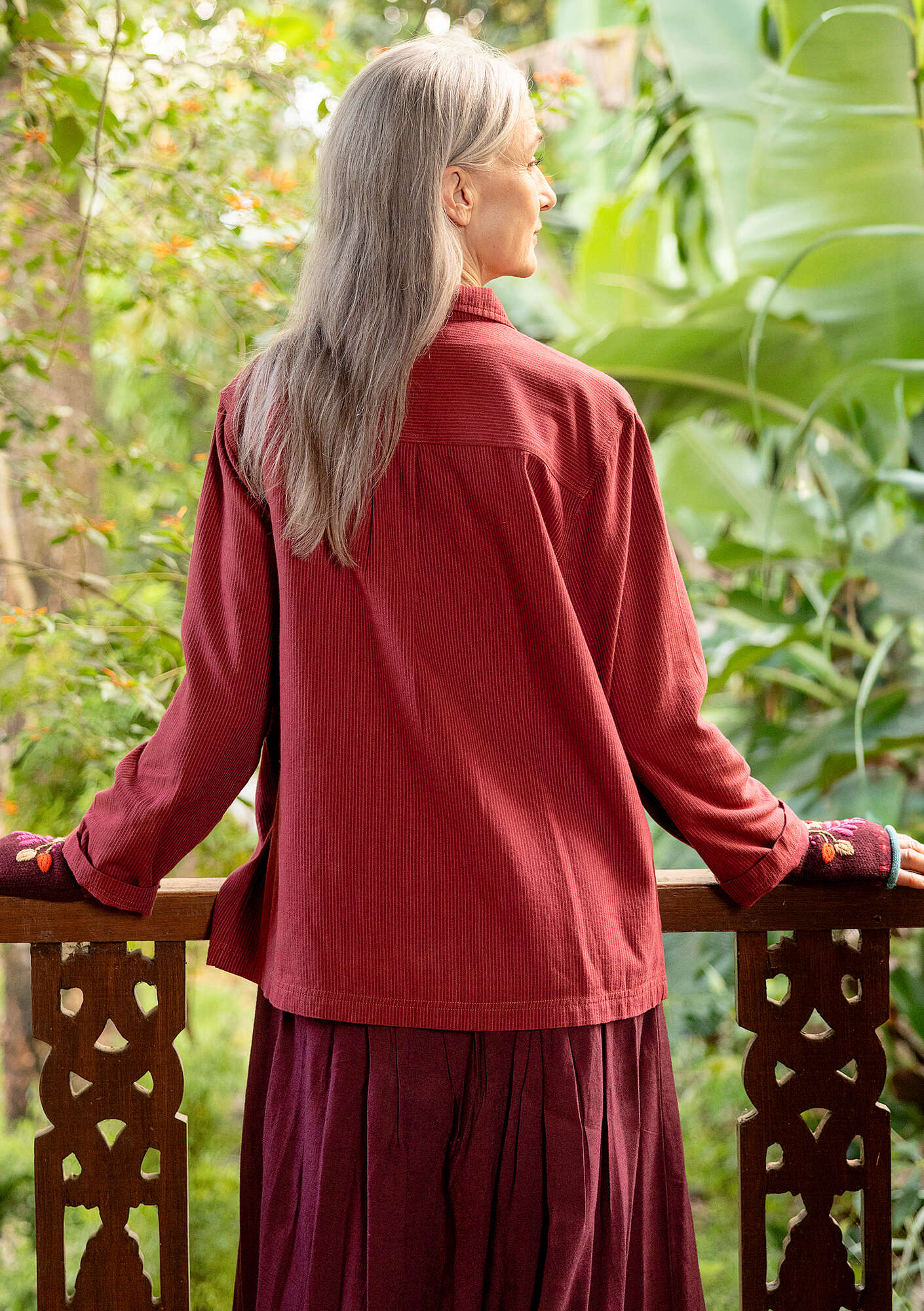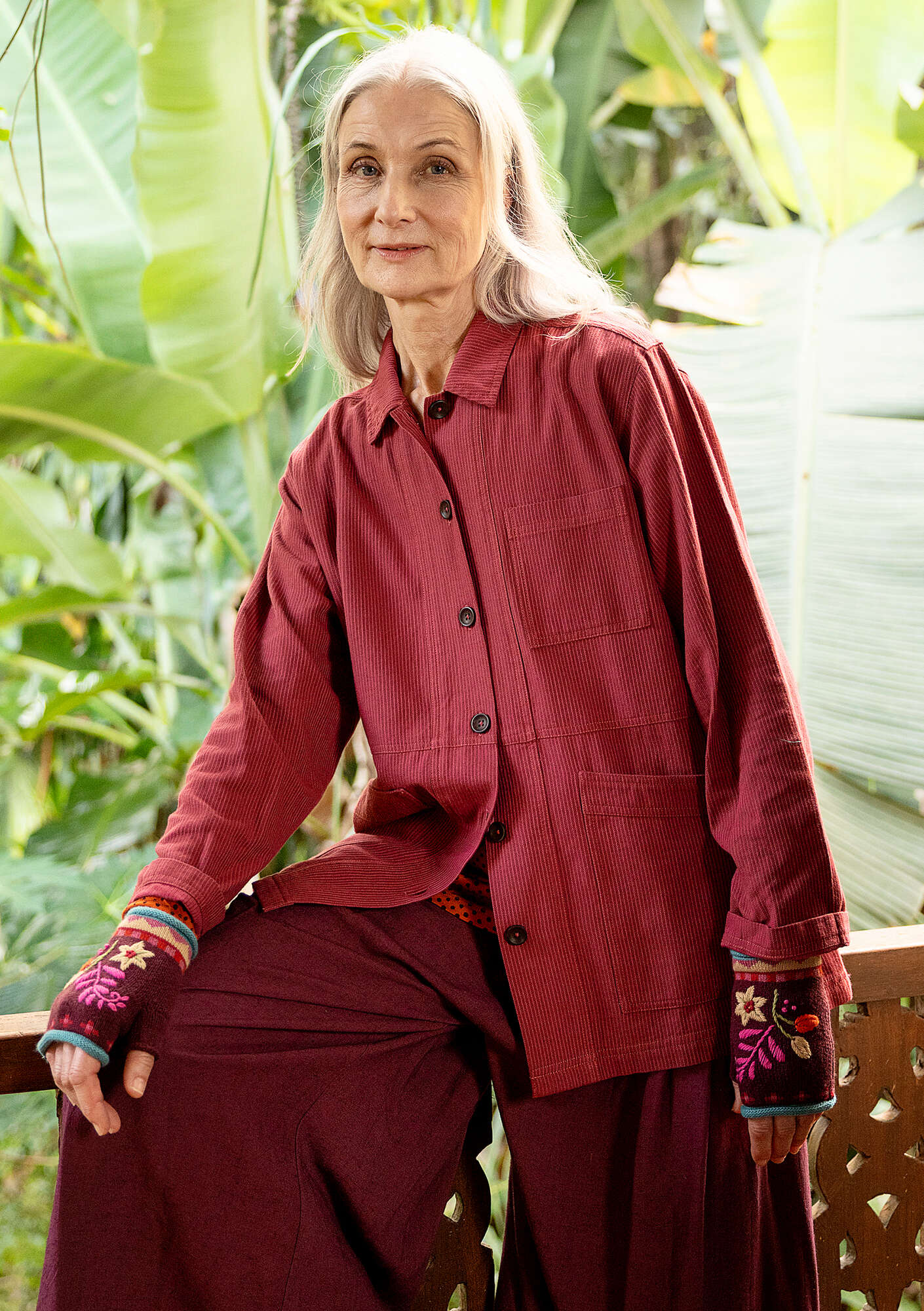 - Versatile, unlined jacket for indoor and outdoor wear, woven in striped twill. Practical patch pockets and a button placket with imitation horn buttons. Straight-cut style with a collar and sleeves with shirt buttoning.Size and Measurement
