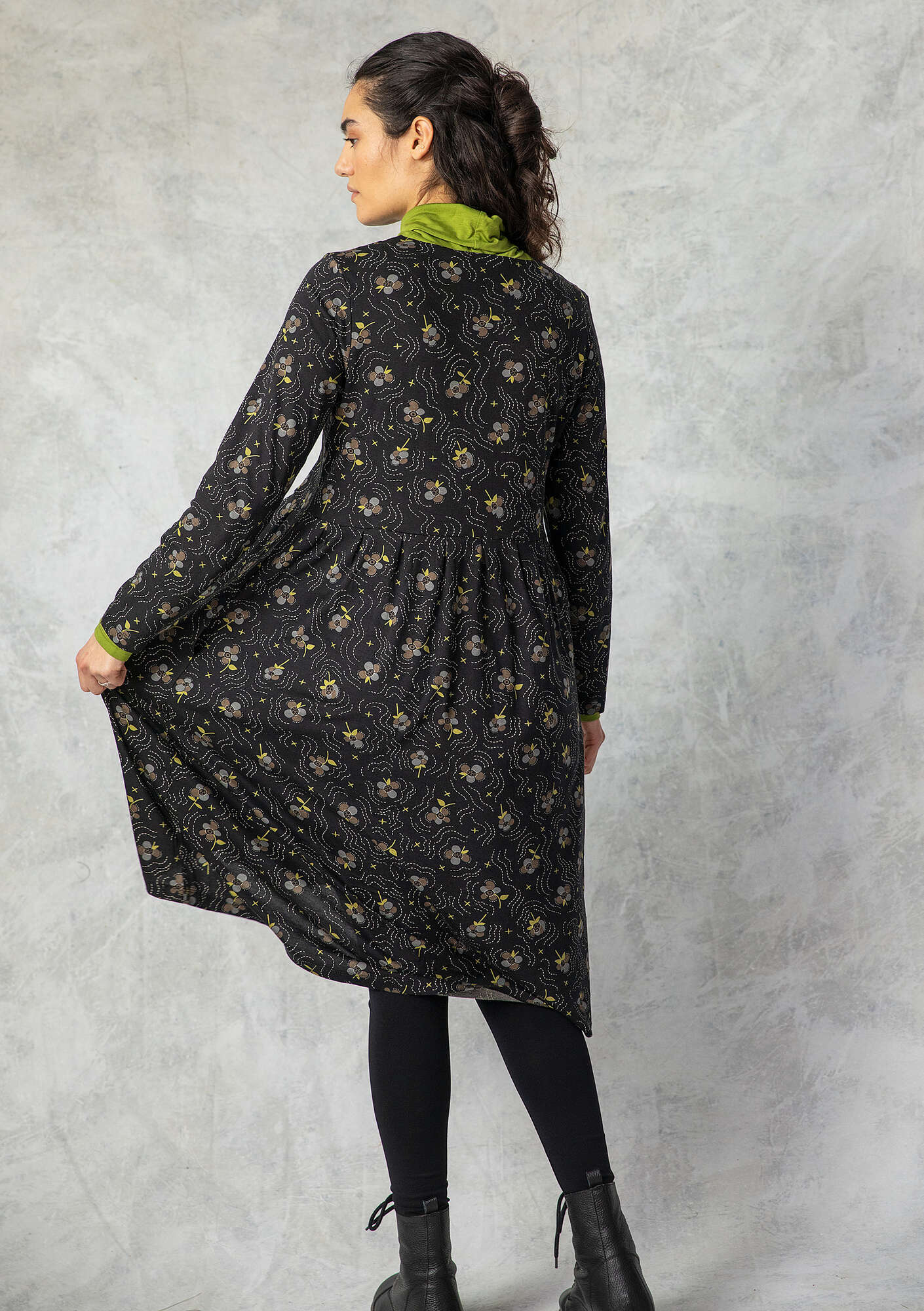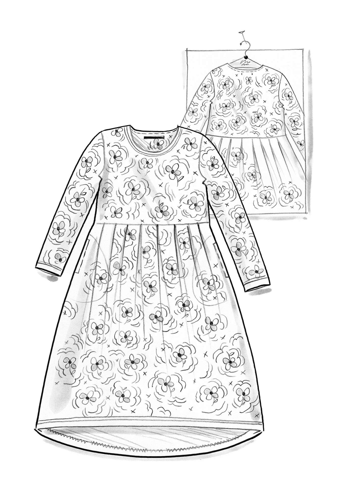 - Printed jersey dress with long sleeves. Style with a seam at the waist and pleats for more volume in the skirt. Round neckline and comfy side pockets.Size and Measurement