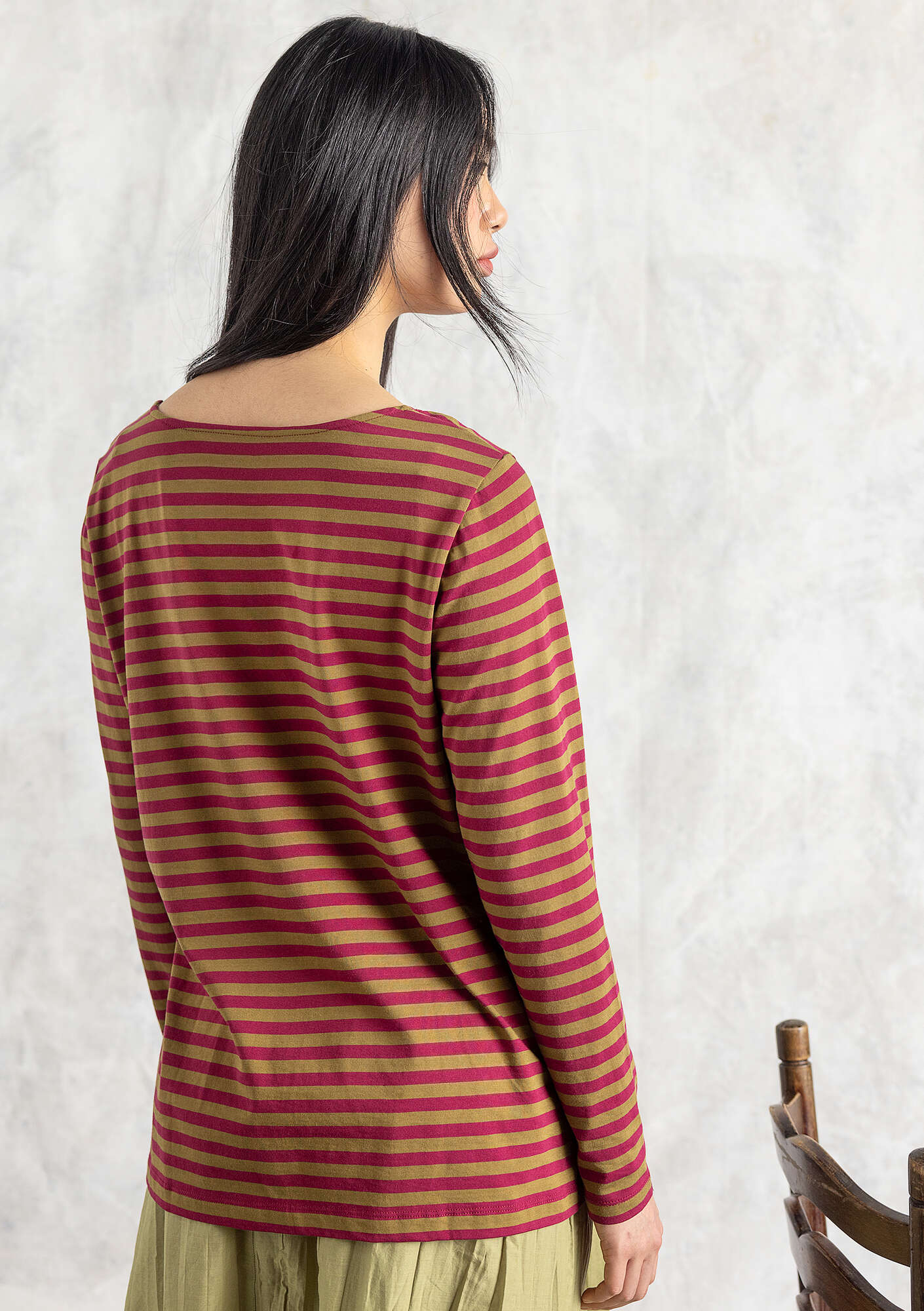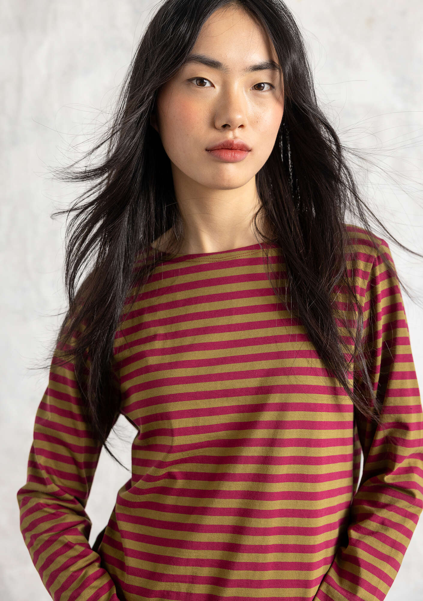 - Yarn-dyed stripes in our classic, simple style with long sleeves. Subtle boatneck with simple double stitching all the way around.Size and Measurement