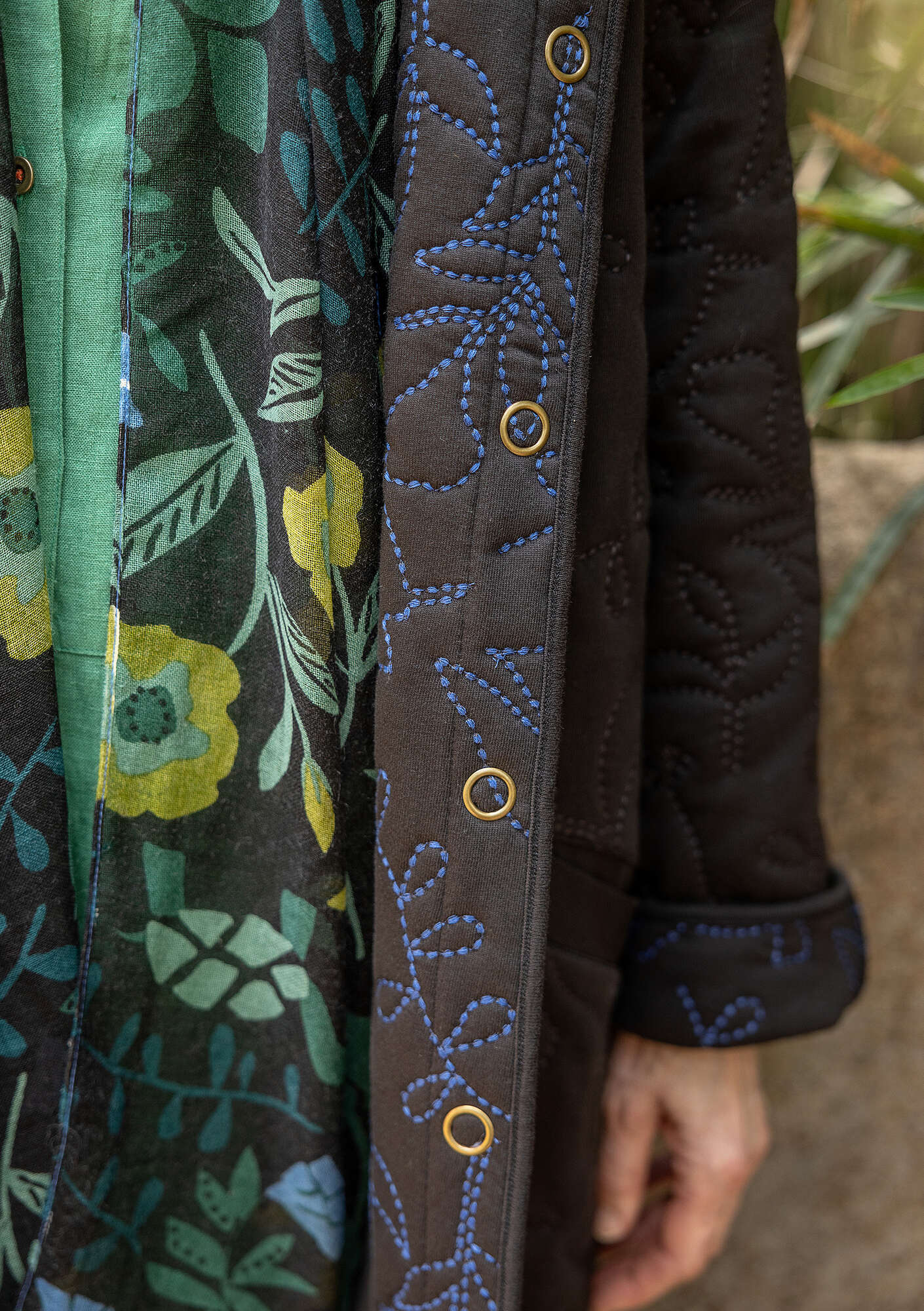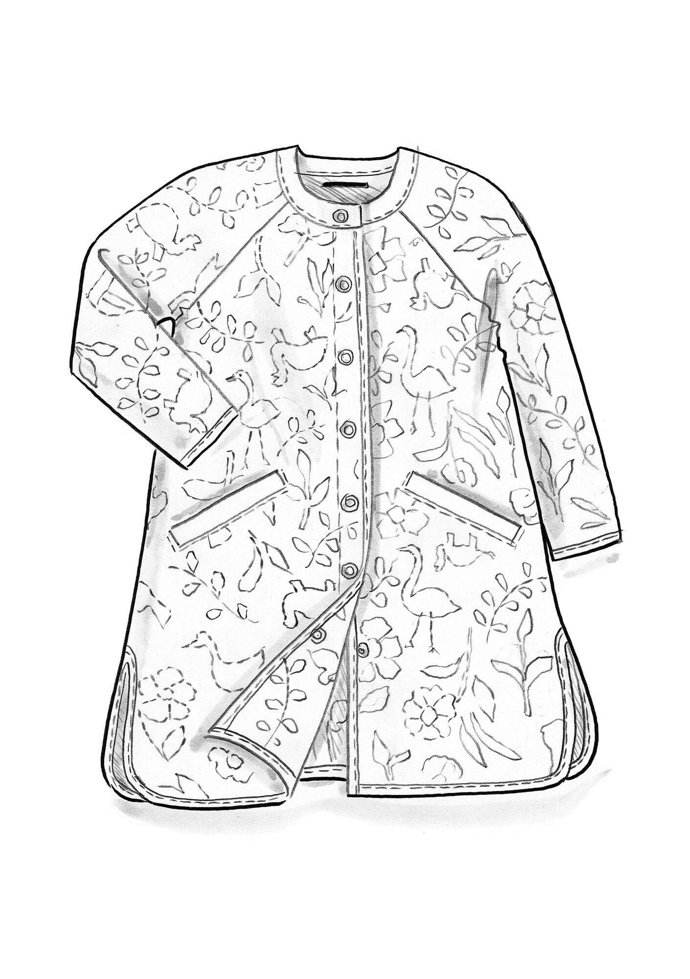 - Jersey jacket with a quilted pattern design and a quilted lining in a contrasting color. Style with a gently rounded hem and a slit at each side. Long raglan sleeves and a band collar. Metal buttons and angled welt pockets at the front with trim.Size and Measurement