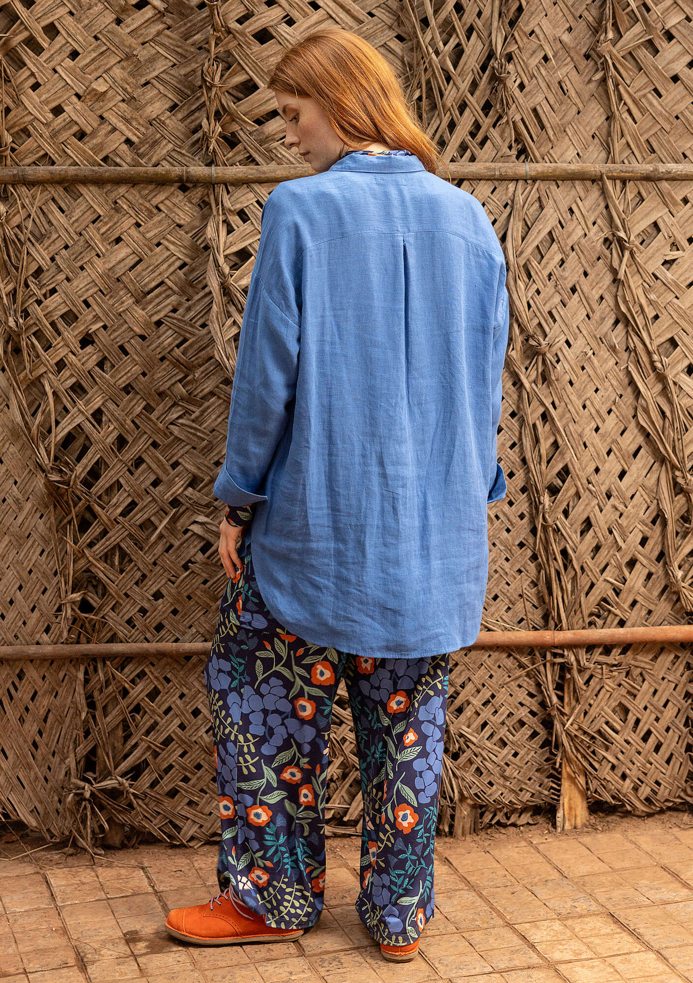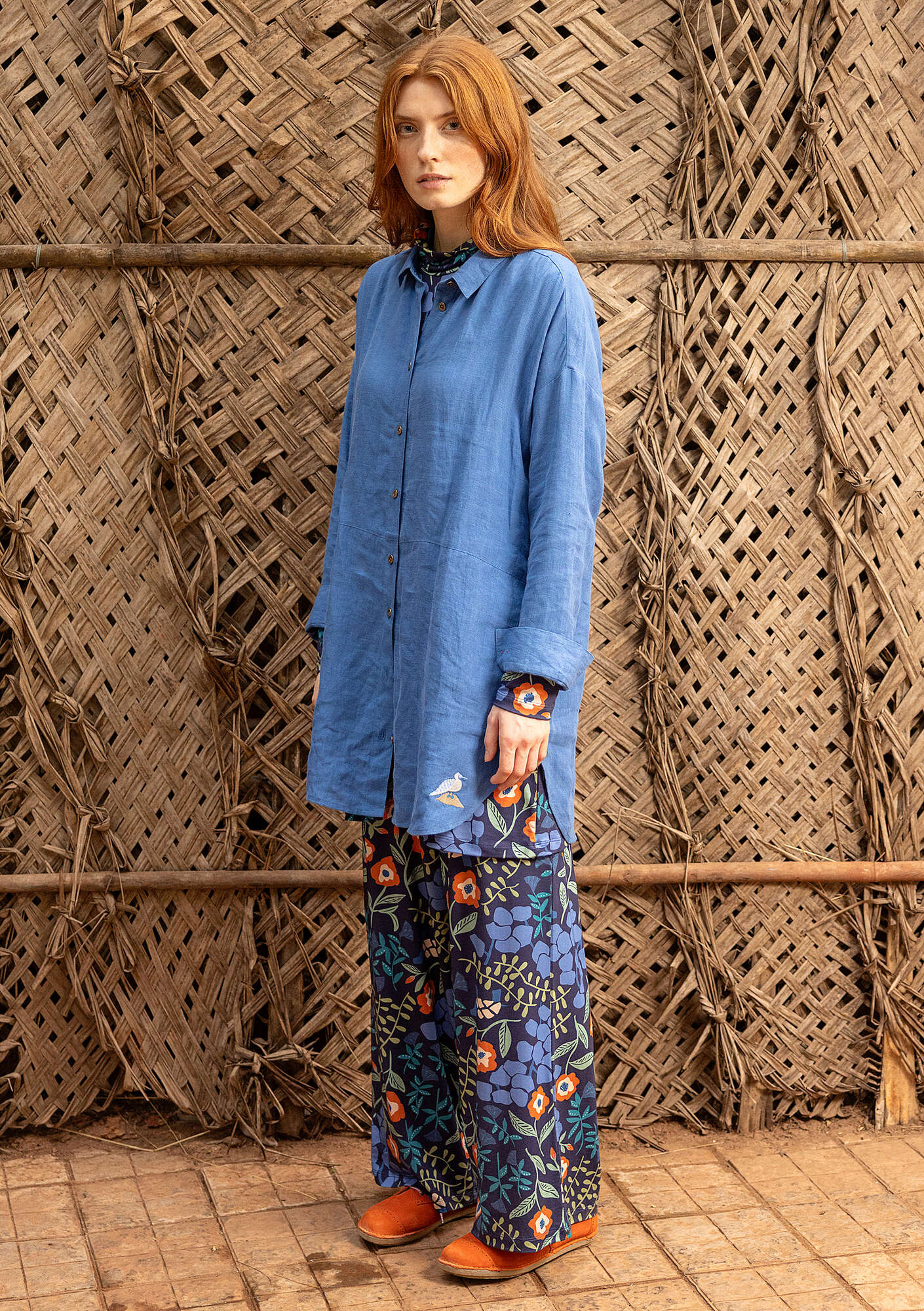 Gudrun Sjödén Women’s Clothes “galapagos” Woven Tunic In Linen | Blue Butterfly