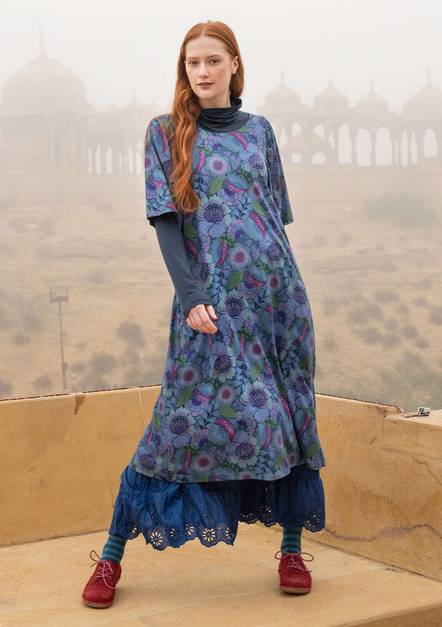 - Digitally printed long dress in jersey. A-line style with short bell sleeves. Round neckline with a subtle boat neck and side pockets.Size and Measurement