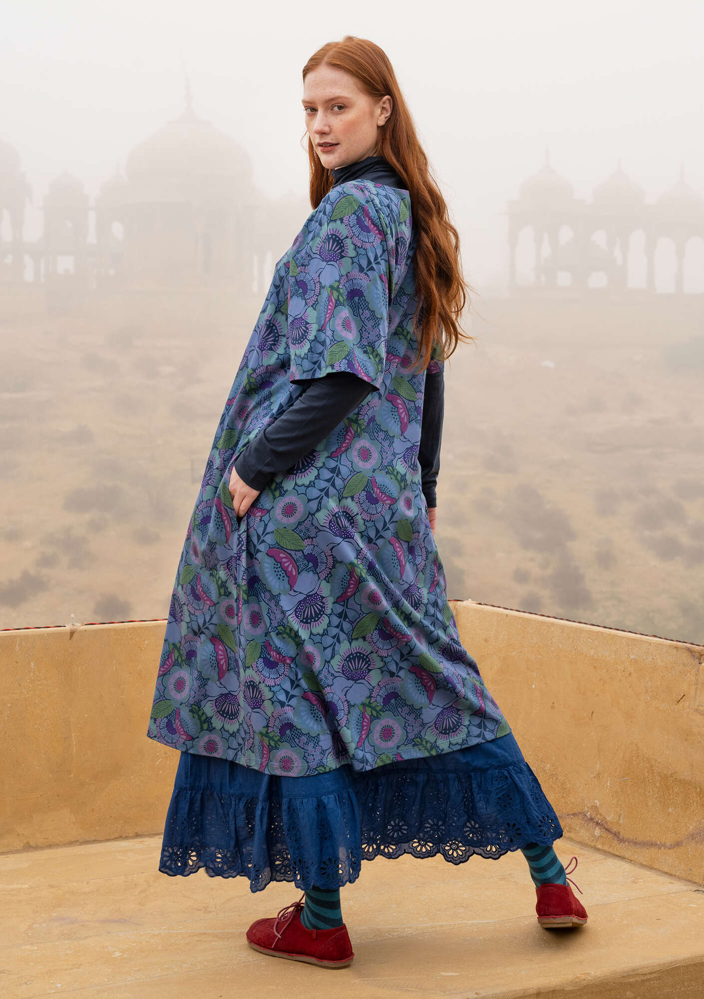 - 50% cotton/50% modal. The cotton is certified organic. TENCEL™ Modal fiber is made from certified forests and is produced by using renewable energy and by recycling the process chemicals. The fabric is digitally printed. The printing process is certified. Machine wash warm, delicate cycle. Stretch gently to length while damp. Do not tumble dry. Shrinkage 3-4%. Made in Volos, Greece.
