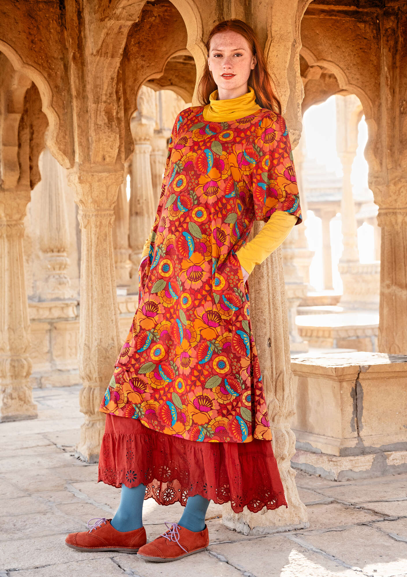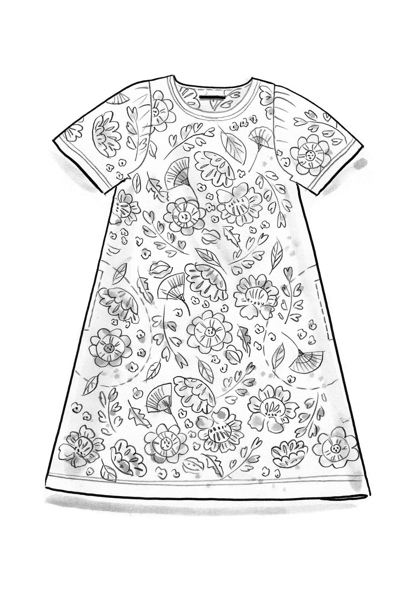 - Digitally printed long dress in jersey. A-line style with short bell sleeves. Round neckline with a subtle boat neck and side pockets.Size and Measurement