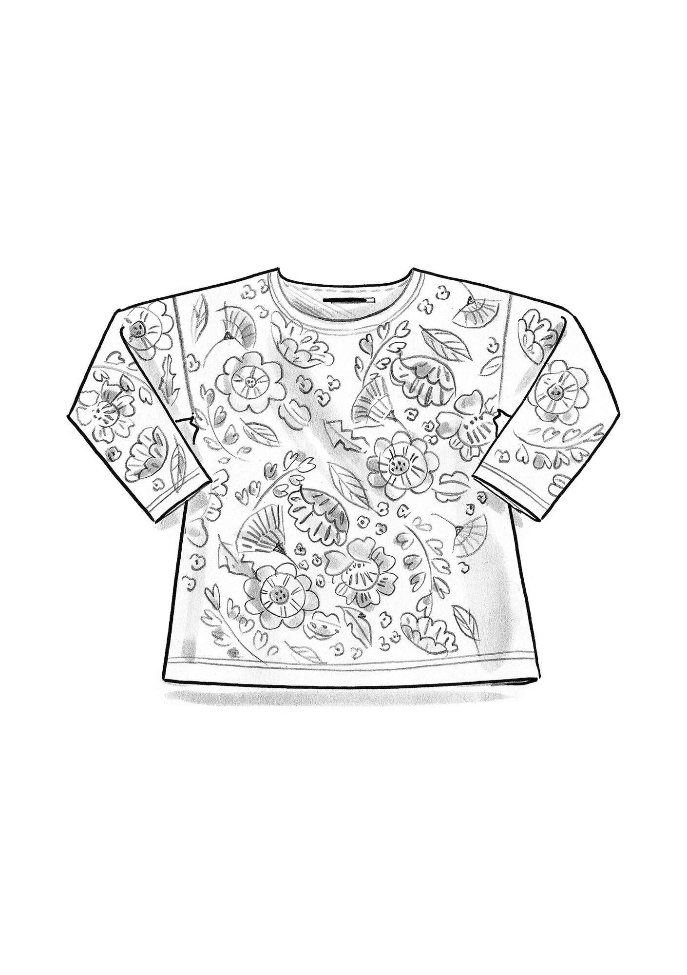 - Digitally printed jersey top patterned with big, beautiful flowers. Boxy style with a subtle boat neck and long sleeves.Size and Measurement
