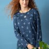 - 50% cotton/50% modal. The cotton is certified organic. TENCEL™ Modal fiber is made from certified forests and is produced by using renewable energy and by recycling the process chemicals. The fabric is digitally printed. The printing process is certified. Machine wash warm, delicate cycle. Stretch gently to length while damp. Do not tumble dry. Shrinkage 3-4%. Made in Volos, Greece.