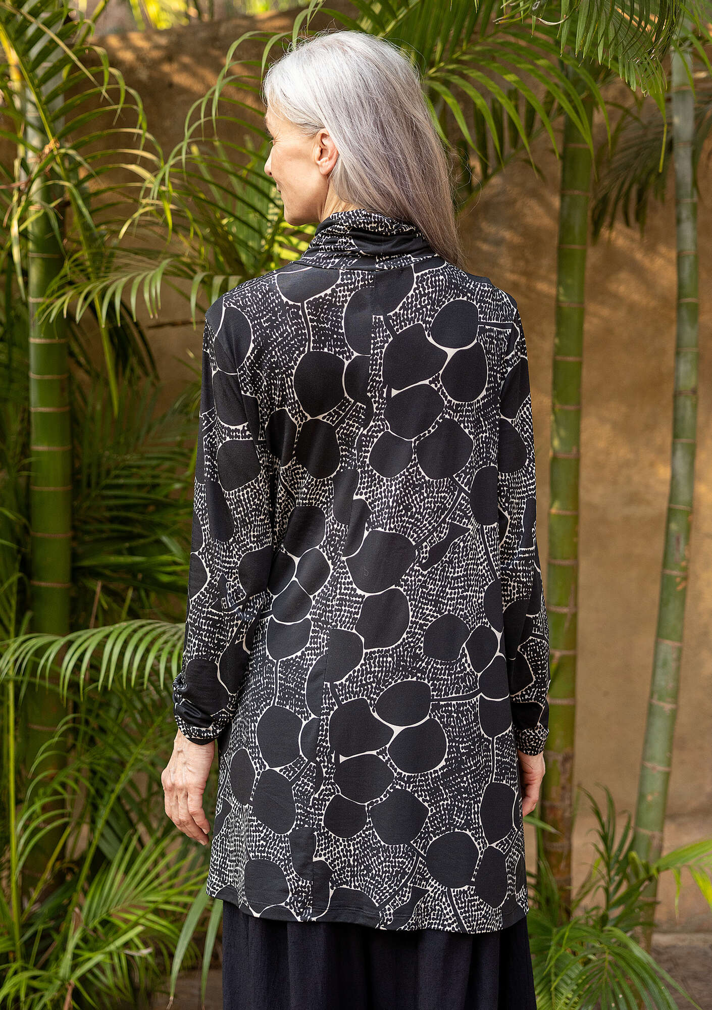 - Printed A-line turtleneck tunic with two different pattern designs that vary between the colorways. Side pockets.Size and Measurement