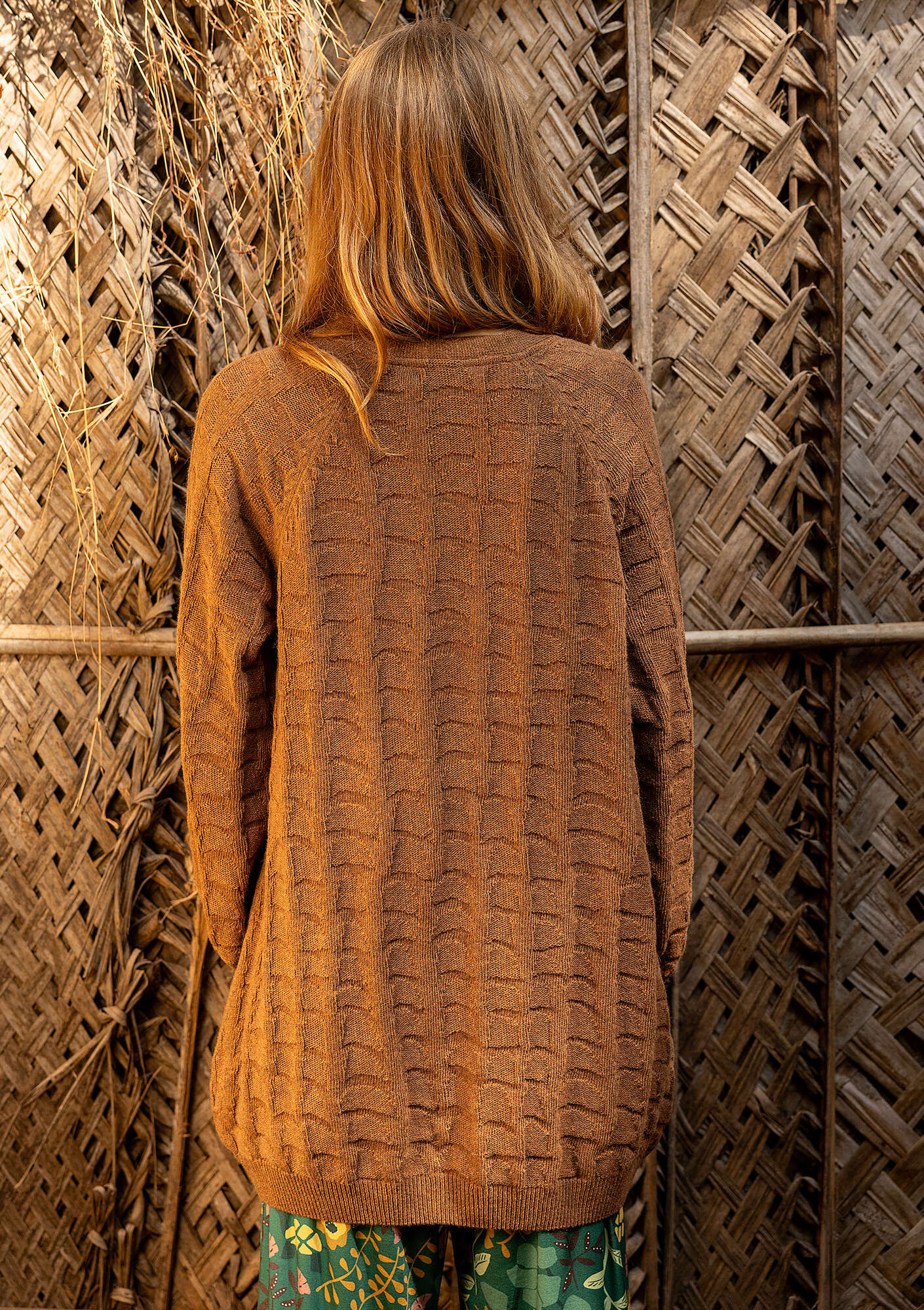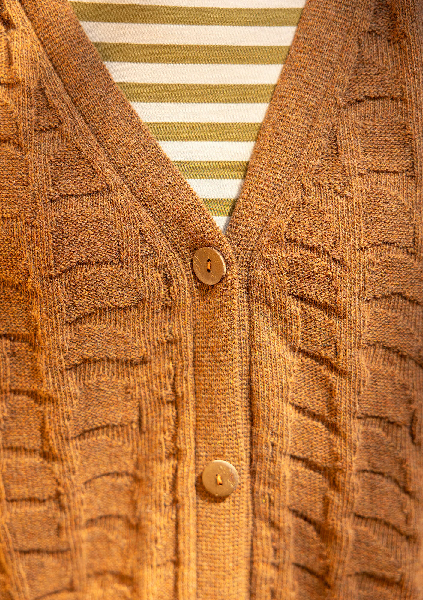 - Textured-knit long cardigan with a tortoiseshell-inspired pattern. Relaxed style with long raglan sleeves, rib-knit finishes, a V-neck and coconut wood buttons.Size and Measurement