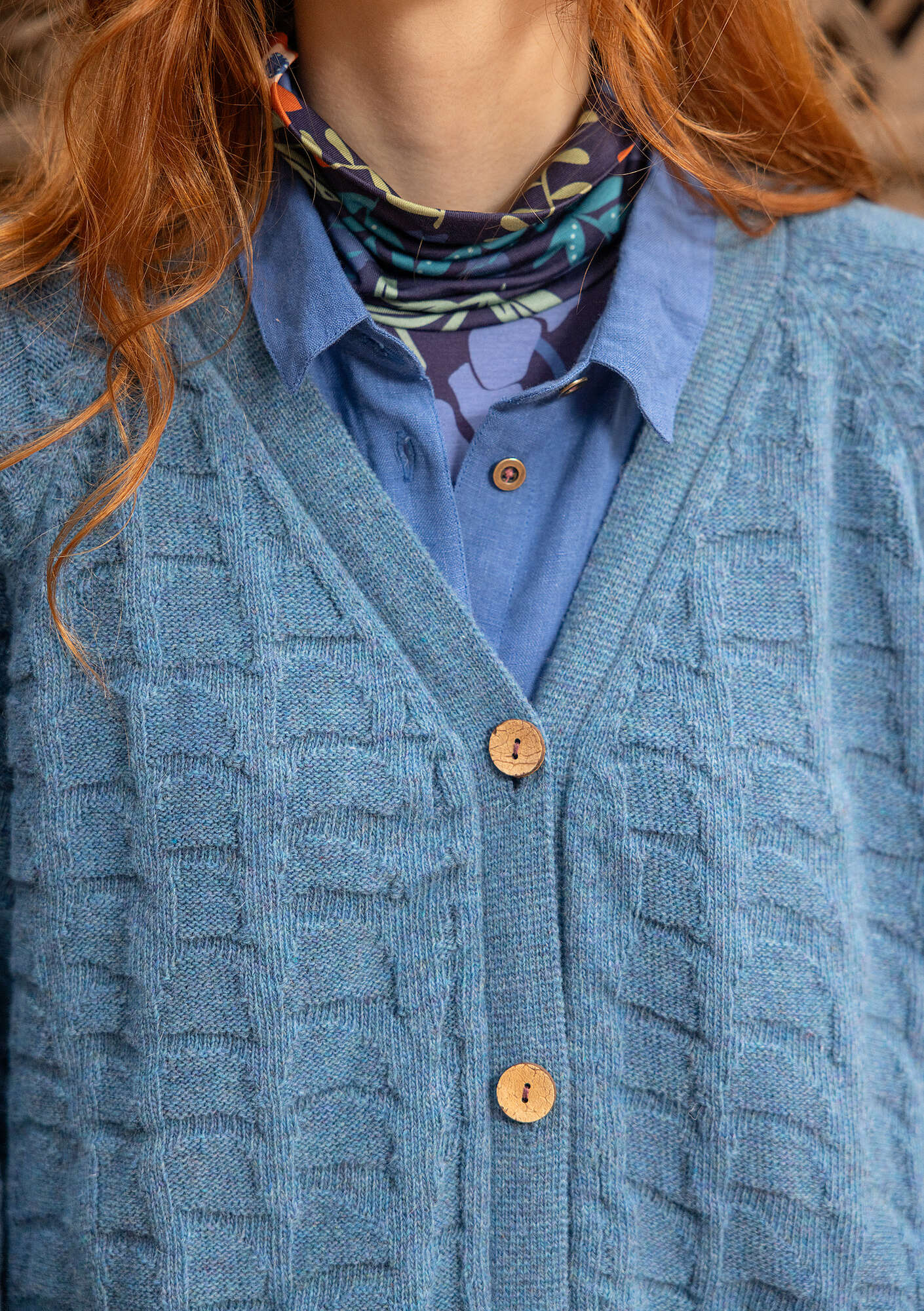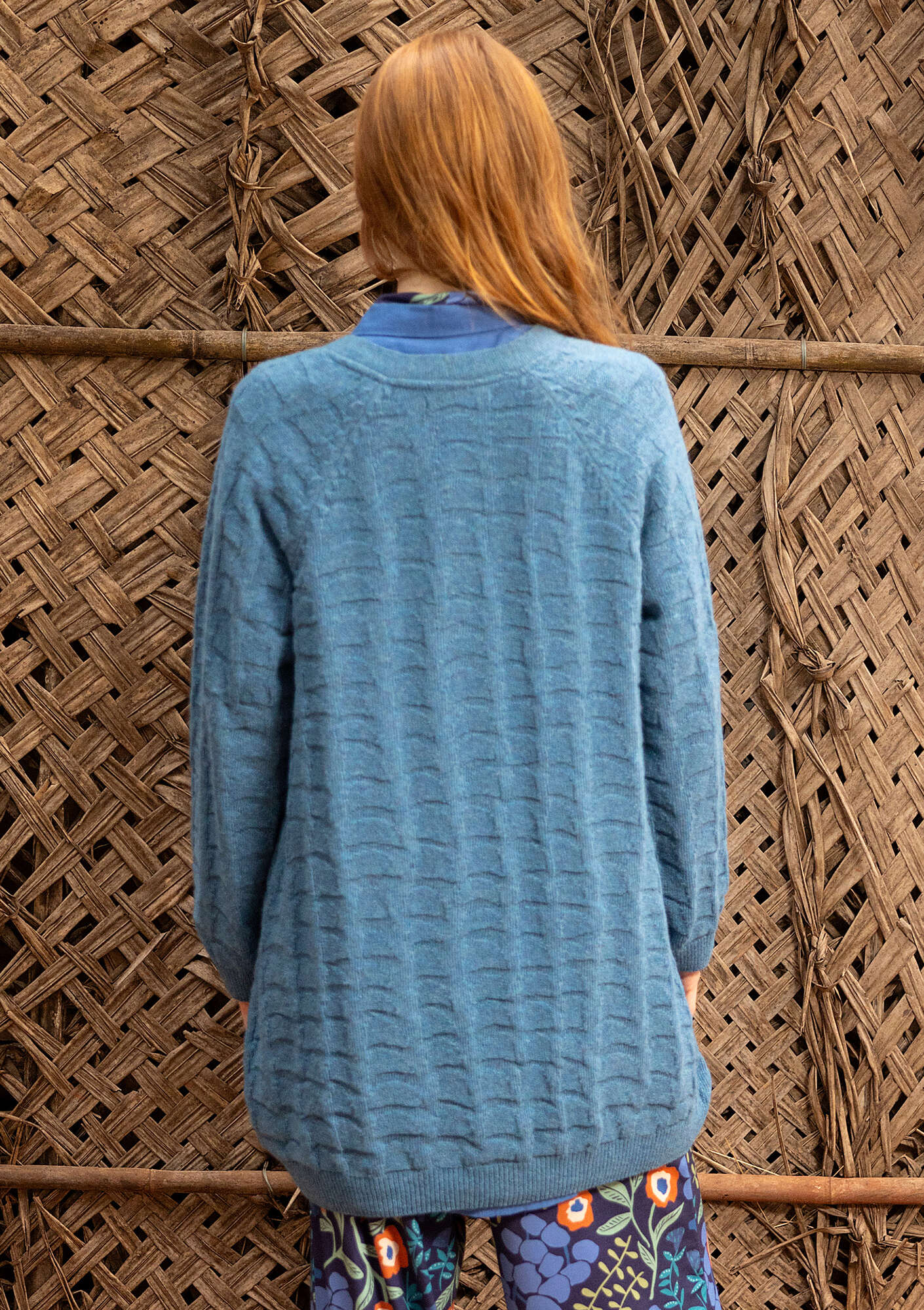 - Textured-knit long cardigan with a tortoiseshell-inspired pattern. Relaxed style with long raglan sleeves, rib-knit finishes, a V-neck and coconut wood buttons.Size and Measurement