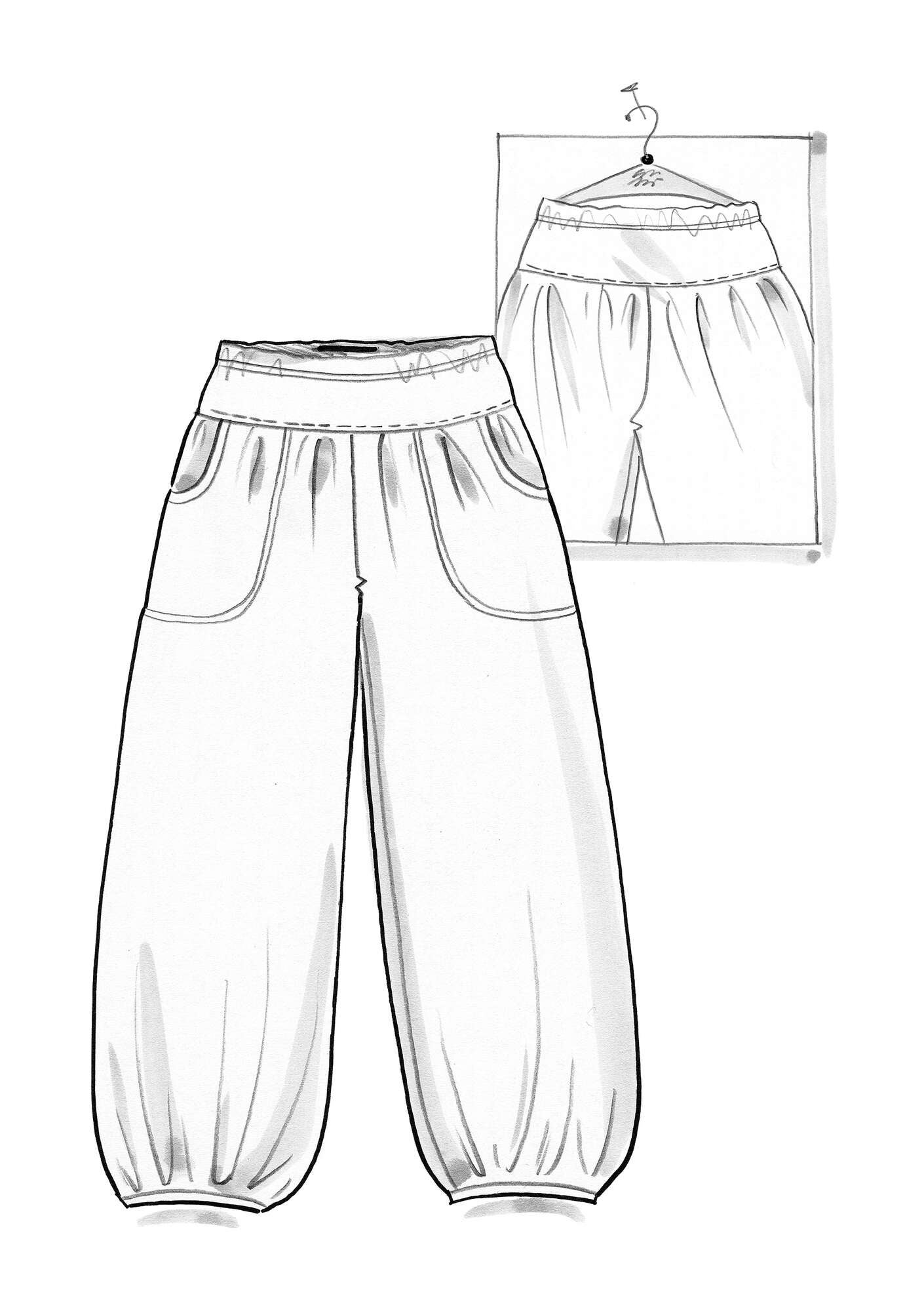- Our popular, solid-colored puff pants in this season’s colors. Style with a waistband, and a comfy elastic waist. Practical side pockets.Size and Measurement