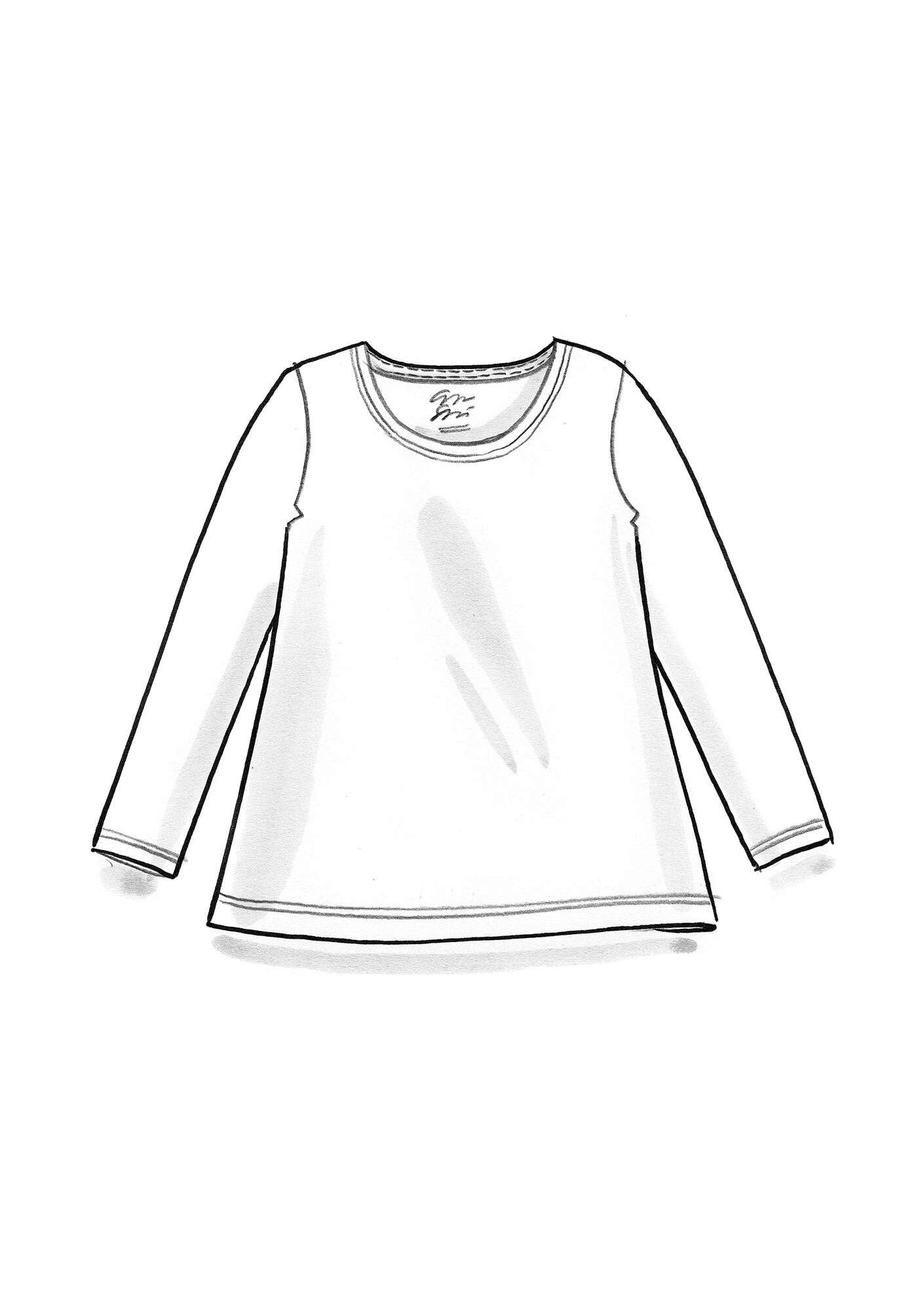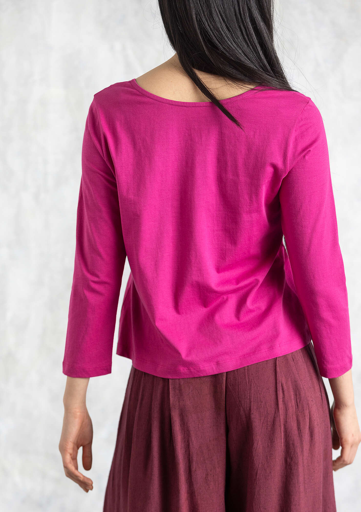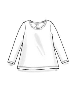 - Fairly fitted, slightly shorter top. Three-quarter sleeves. Rounded, slightly lower neckline.Size and Measurement