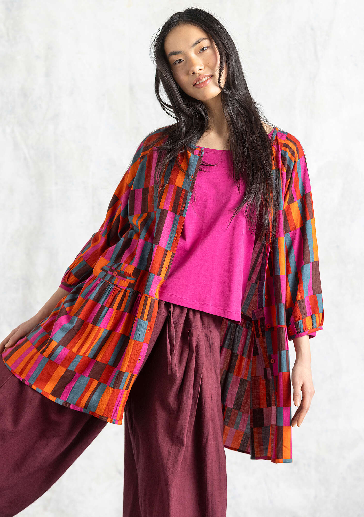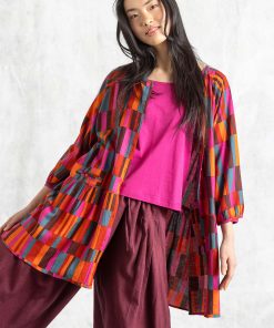- 100% cotton. The cotton is certified organic. The entire production chain is certified. Machine wash warm, delicate cycle. Stretch gently to length while damp. Do not tumble dry. Shrinkage 3-4%. Made in Noida, India.