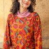 - Simple top in ribbed fabric. Long sleeves and decorative flatlock seams. Pretty accent-colored band at the neck.Size and Measurement