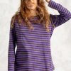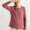 - Simple top in ribbed fabric. Long sleeves and decorative flatlock seams. Pretty accent-colored band at the neck.Size and Measurement