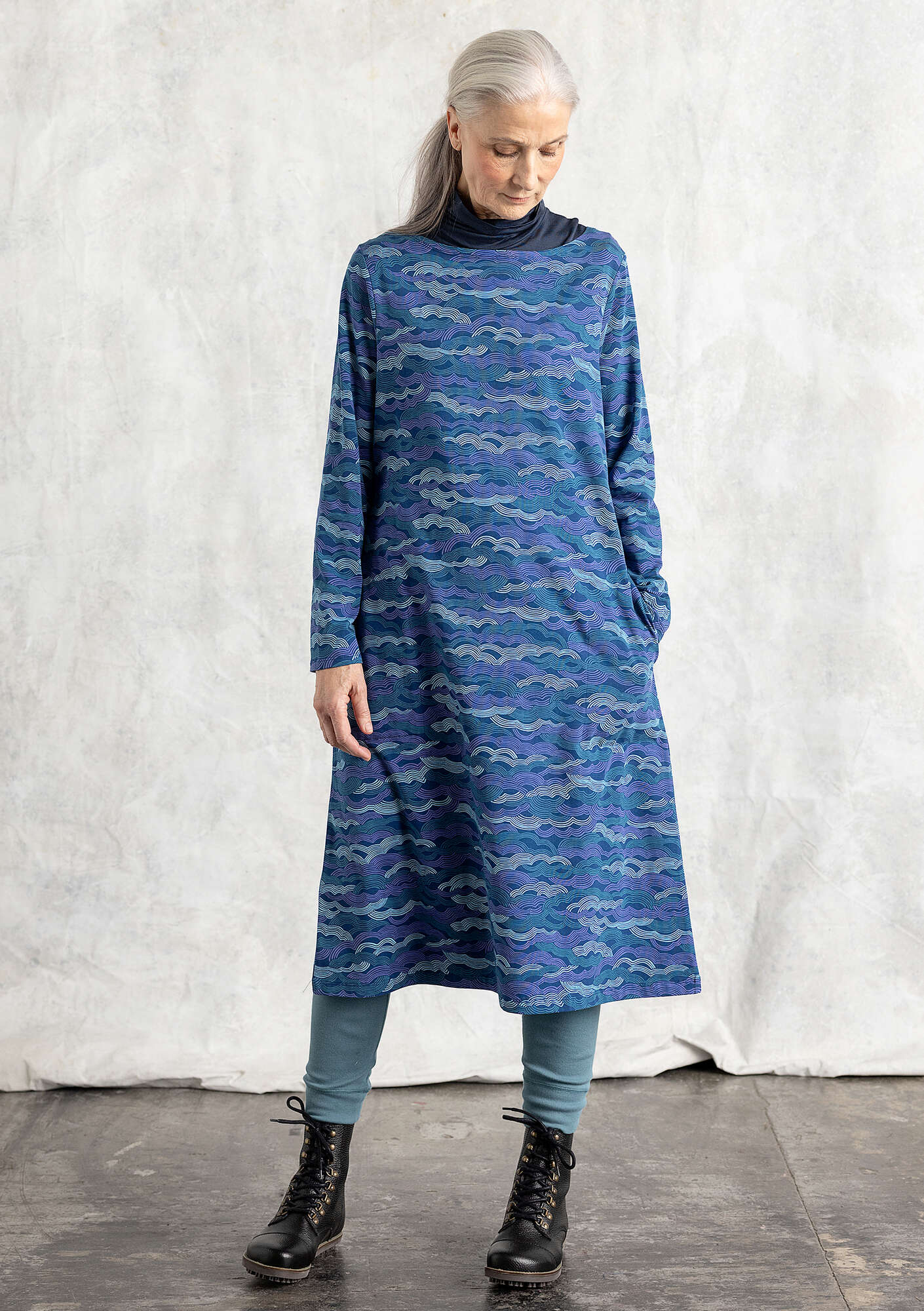 Gudrun Sjödén Women’s Clothes “mona” Jersey Dress In Cotton/spandex | Indigo Blue & Patterned