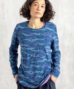 Gudrun Sjödén Women’s Clothes “mona” Jersey Top In Organic Cotton/spandex | Indigo Blue & Patterned