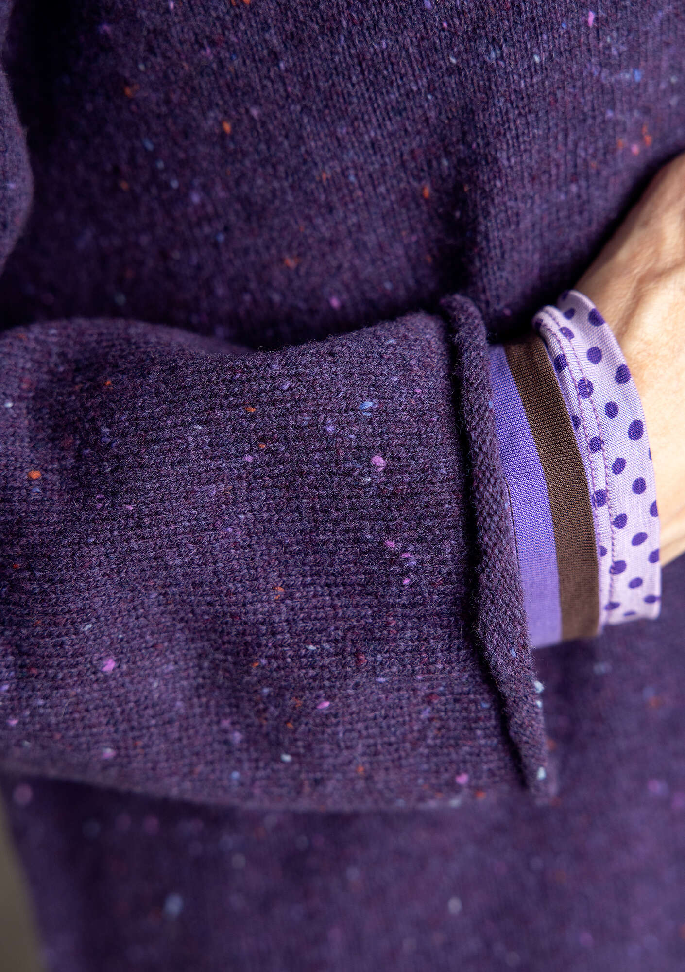 - 80% wool/20% nylon. The wool is mulesing-free. 25% of the wool is certified recycled. The nylon is certified recycled. Even the finest wool may be subject to some pilling after repeated wear. Carefully remove any pilling. The yarn is a nubby neps yarn with characteristic, colorful little tufts. We suggest airing this garment or steaming with an iron. As a last option, hand wash cold or wash in the washing machine set to the wool-wash cycle. Use wool detergent. Gently reshape while damp. Dry flat. Store flat. Shrinkage 4-5%. Made in Xinchang, China.