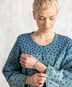 - 100% cotton. 62% of the cotton is recycled. 38% of the cotton is certified organic. The recycled cotton is certified and composed of textile production scraps that have been spun into new fibers. The dyeing process is certified. Machine wash warm, delicate cycle. Gently reshape while damp. Dry flat. Store flat. Shrinkage 4-5%. Made in Casablanca, Morocco.