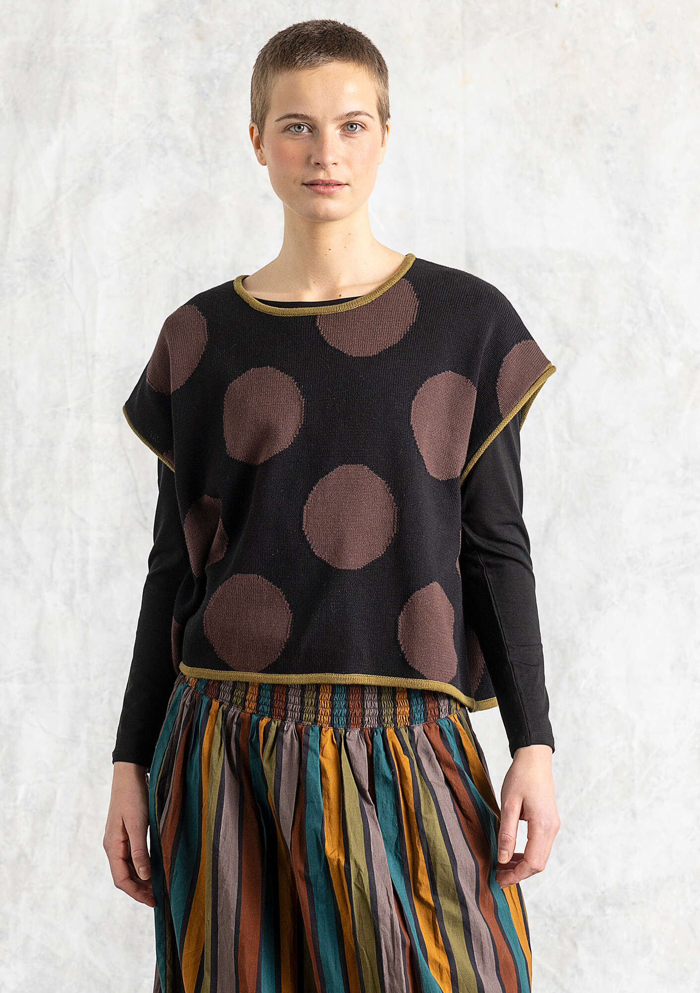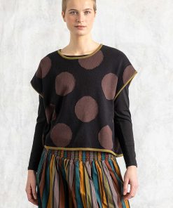 - Simple style with a round neckline and long sleeves. Available printed with “Tina” dots and solid-colored.Size and Measurement