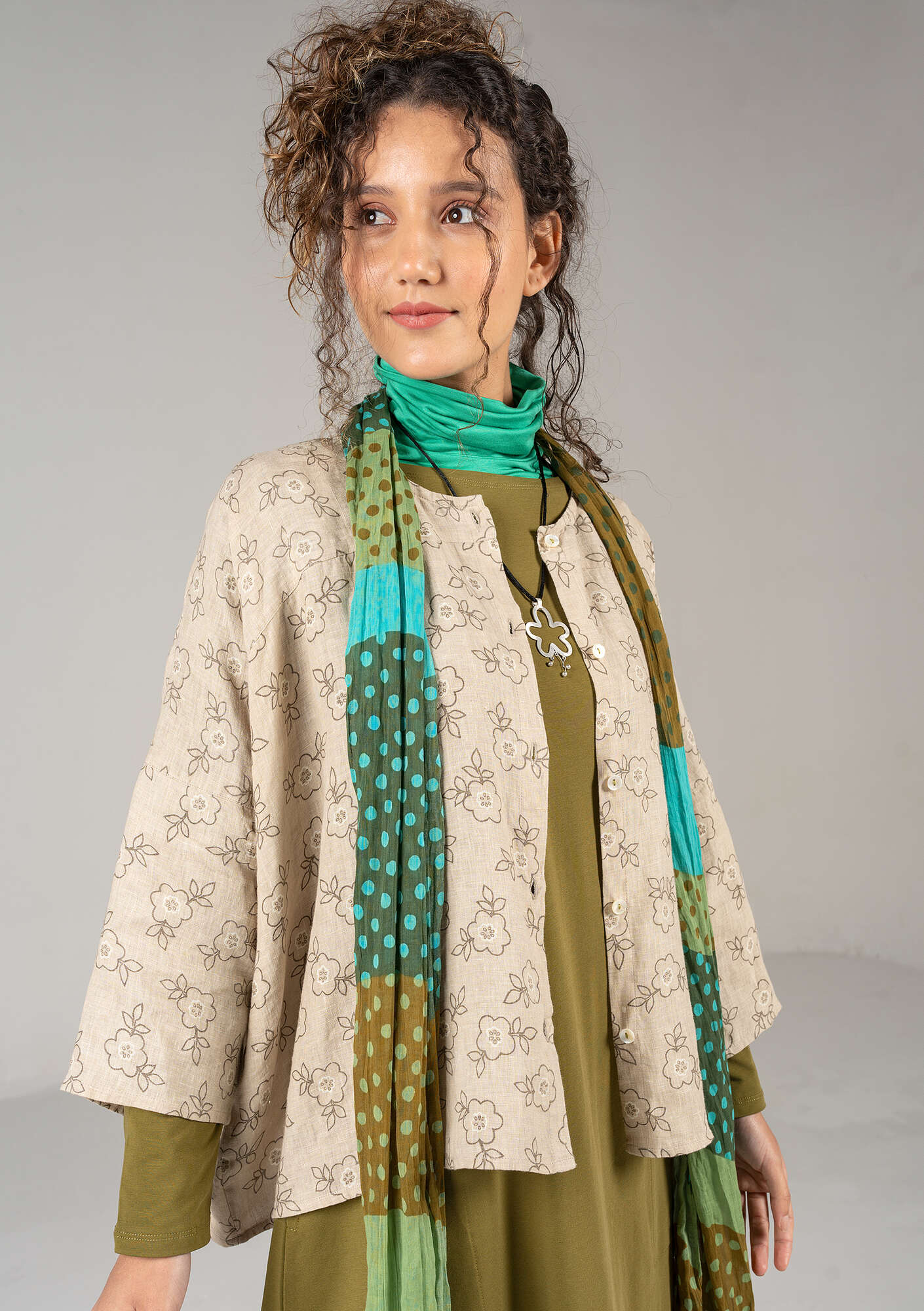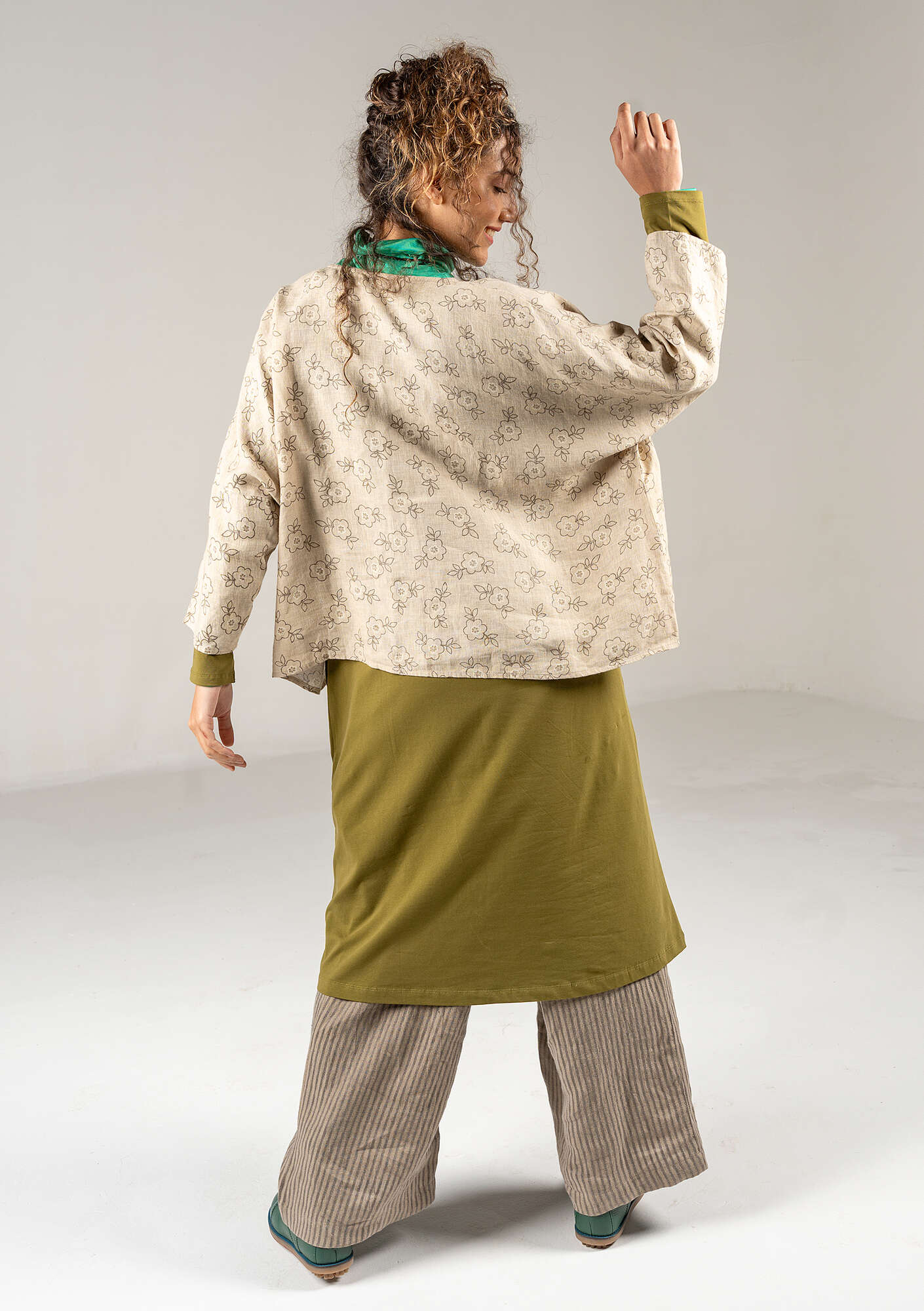 - 100% linen. The linen is dew-retted, a natural process in which the sun and dew handle the work. The entire production chain is certified. Machine wash warm, delicate cycle. Medium iron. Shrinkage 2-3%. Made in Kundli, India.