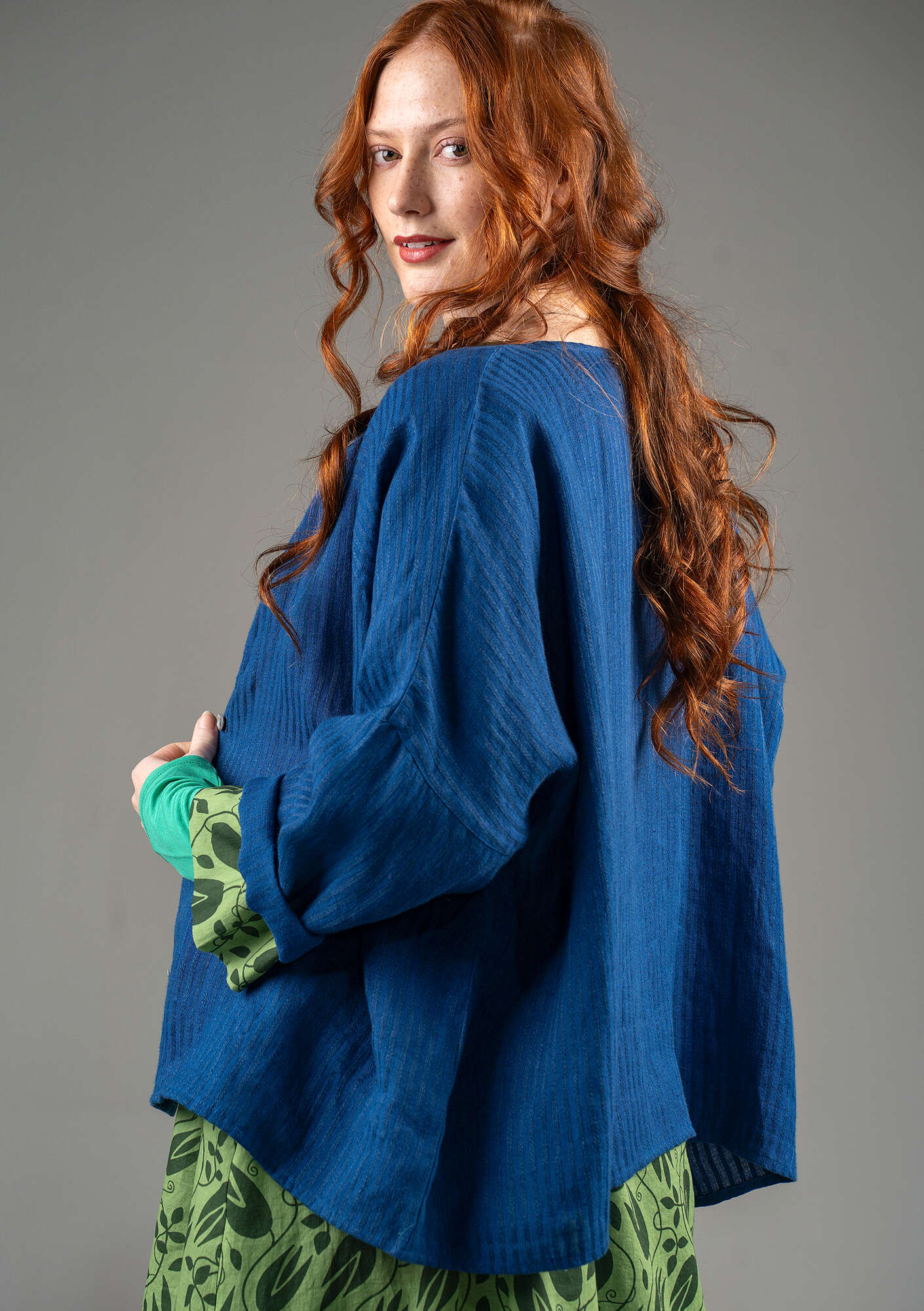 Gudrun Sjödén Women’s Clothes Woven “bodil” Blouse In Linen | Indigo Blue