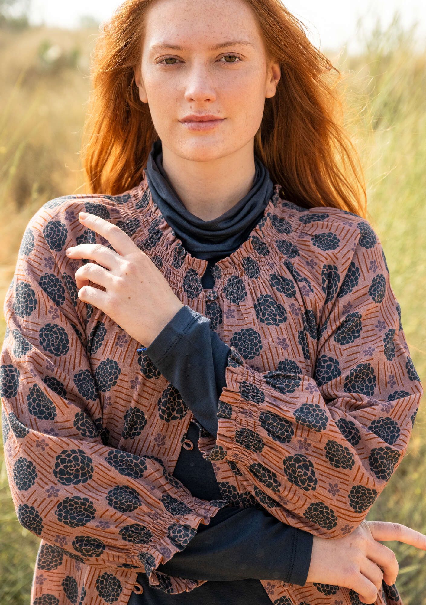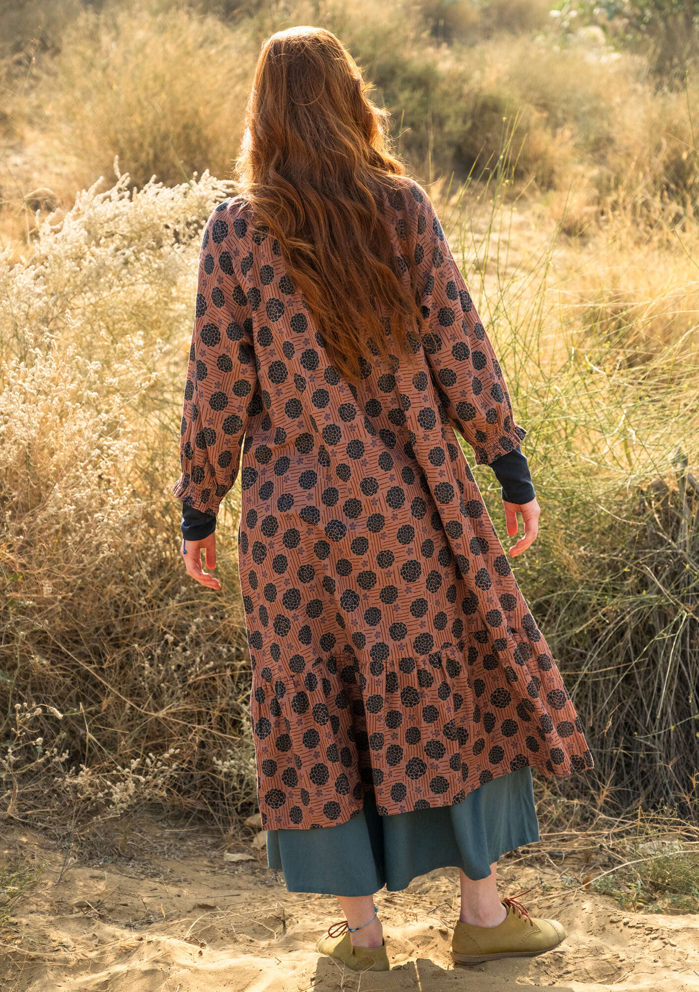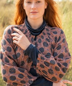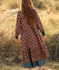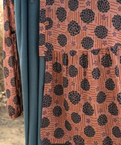 - 100% cotton. The cotton is certified organic. The entire production chain is certified. The fabric is digitally printed. Machine wash warm, delicate cycle. Medium iron. Shrinkage 2-3%. Made in Faridabad, India.