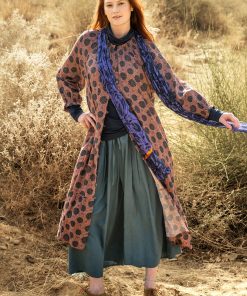 - 100% cotton. The cotton is certified organic. The entire production chain is certified. The fabric is digitally printed. Machine wash warm, delicate cycle. Medium iron. Shrinkage 2-3%. Made in Faridabad, India.