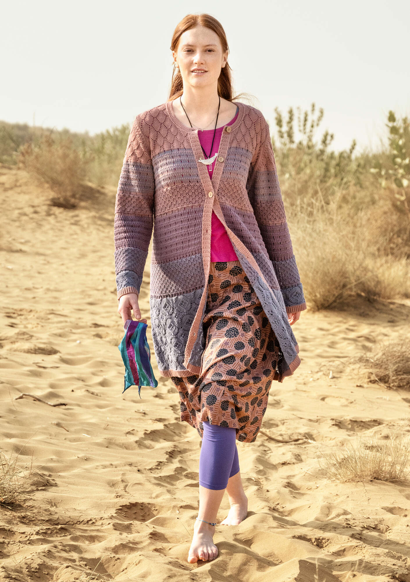 - 100% cotton. The cotton is certified organic. The entire production chain is certified. The fabric is digitally printed. Machine wash warm, delicate cycle. Medium iron. Shrinkage 2-3%. Made in Faridabad, India.