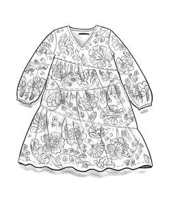 - Digitally printed dress in an exciting style. Constructed in diagonally cut panels, with the fabric direction placed on an angle. V-neck and long puff sleeves with elastic at the cuffs. Pockets at the side seams.Size and Measurement