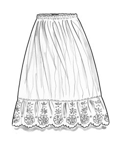 - A simple style with an elastic waist and eyelet lace flowers at the hem. The elastic can be adjusted with a small button for a better fit.Size and Measurement
