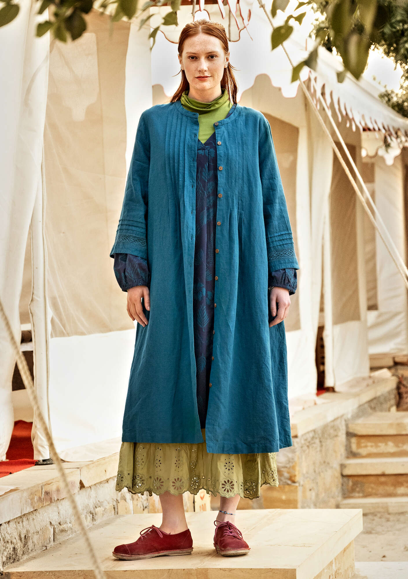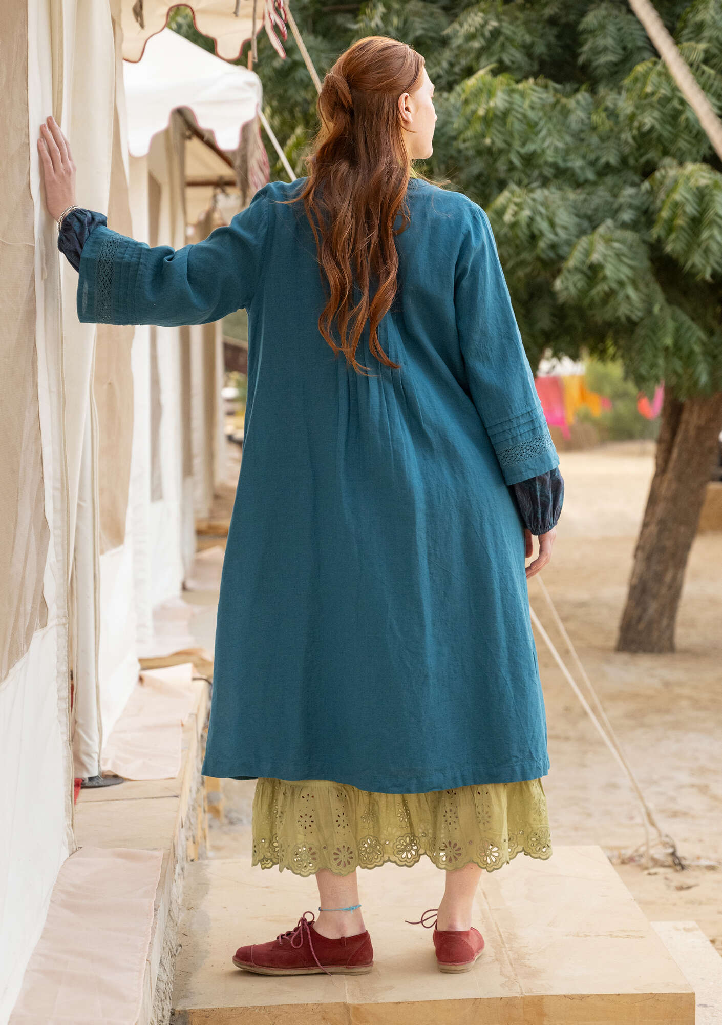 Gudrun Sjödén Women’s Clothes Woven “sand” Dress In Organic Cotton/linen | Petrol Blue