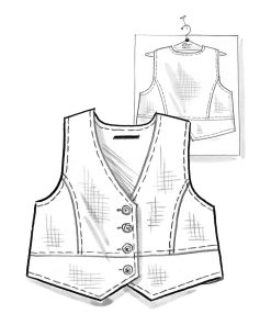 - Lined vest made in solid-colored cotton twill. Angled lower edge in front, and a small V-shaped vent in the back. Pretty mother-of-pearl buttons.Size and Measurement