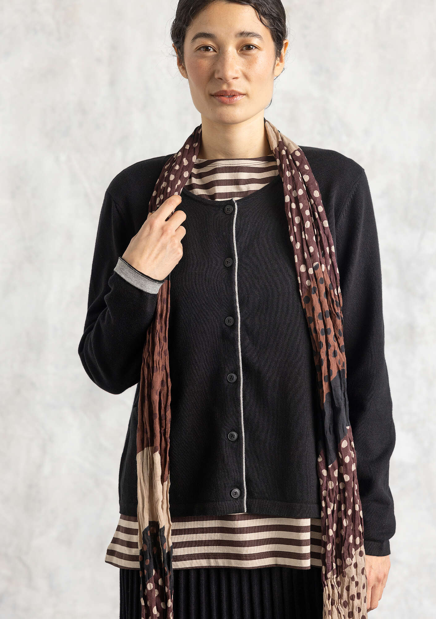 - Our cool, sweeping cotton shawl in organic cotton. Several different printed patterns. Classic tulips and graphic wave designs.Material and Production