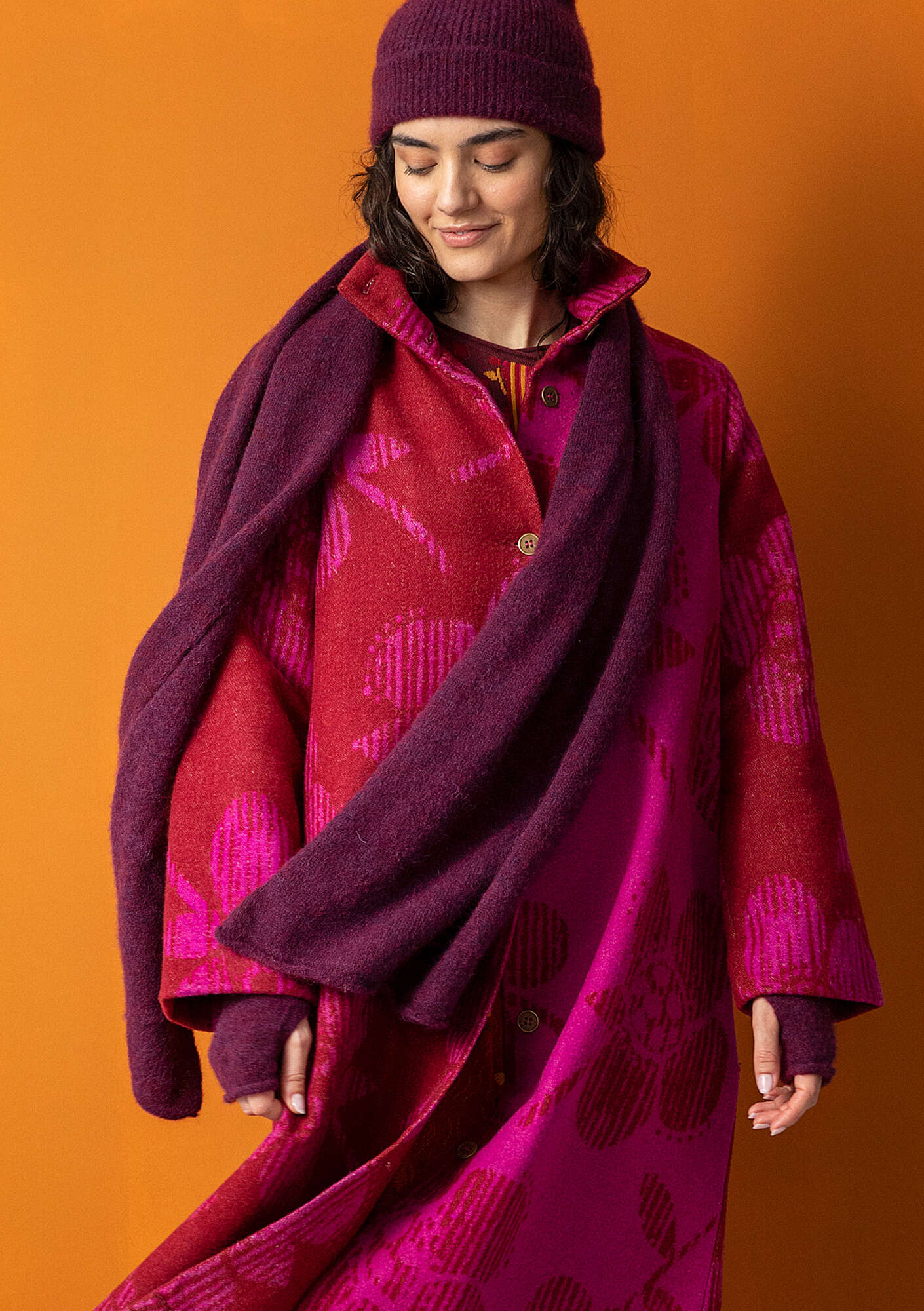 - 50% alpaca/28% polyamide/22% wool. The polyamide is certified recycled. The wool is mulesing-free. Wool may pill after repeated wear. Carefully remove any pilling. We suggest airing this garment or steaming with an iron. As a last option, hand wash cold or wash in the washing machine set to the wool-wash cycle. Use wool detergent. Gently reshape while damp. Dry flat. Store flat. Shrinkage 4-5%. Made in Petrich, Bulgaria.