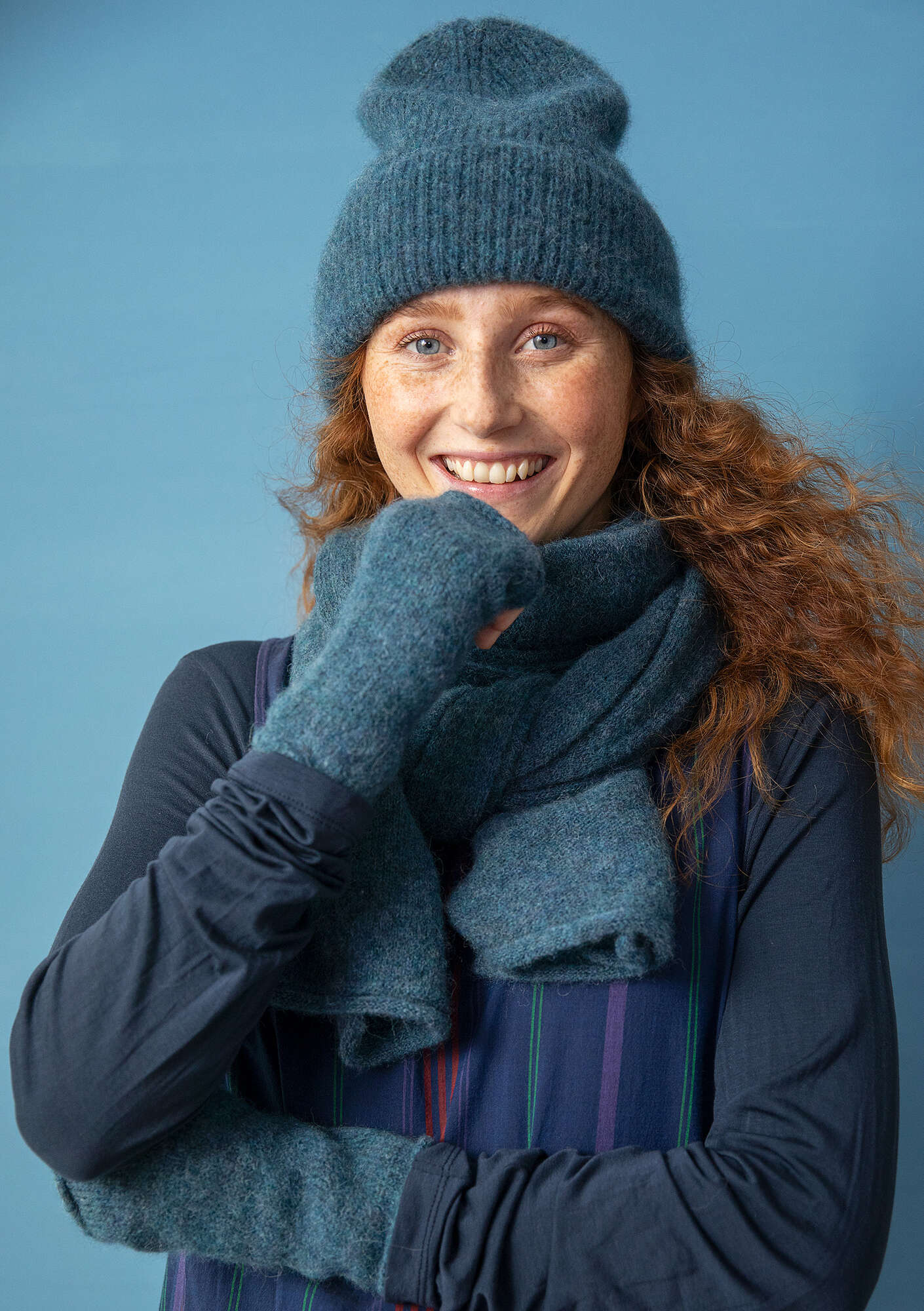 - 50% alpaca/28% polyamide/22% wool. The polyamide is certified recycled. The wool is mulesing-free. Wool may pill after repeated wear. Carefully remove any pilling. We suggest airing this garment or steaming with an iron. As a last option, hand wash cold or wash in the washing machine set to the wool-wash cycle. Use wool detergent. Gently reshape while damp. Dry flat. Store flat. Shrinkage 4-5%. Made in Petrich, Bulgaria.