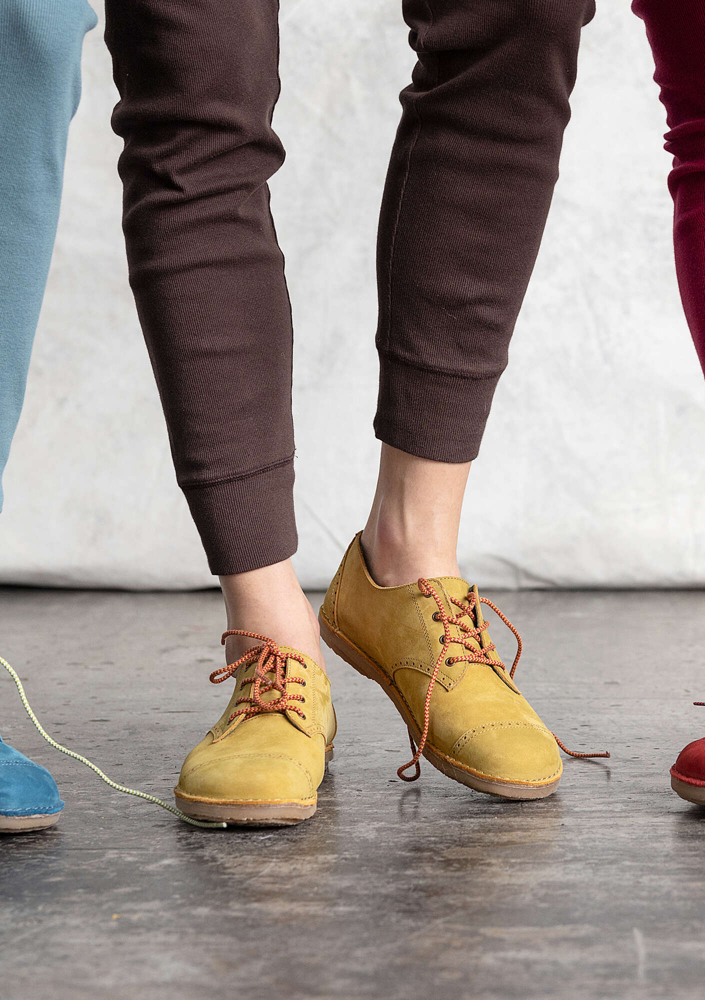 - Cute walking shoes with practical soles. Made in soft nubuck, with an accent-colored lining and dotted insoles. Detailed with decorative perforations.Size and Measurement