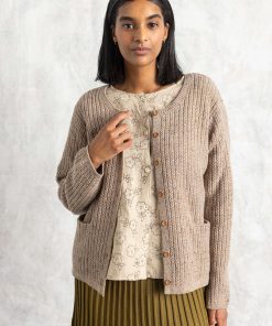 Gudrun Sjödén Women’s Clothes Nubby Cardigan In A Lambswool Blend | Light Bottle Green & Melange