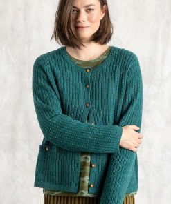 Gudrun Sjödén Women’s Clothes Nubby Cardigan In A Lambswool Blend | Light Bottle Green & Melange