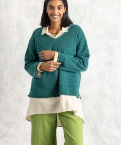 Gudrun Sjödén Women’s Clothes Nubby Sweater In A Lambswool Blend | Light Bottle Green & Melange